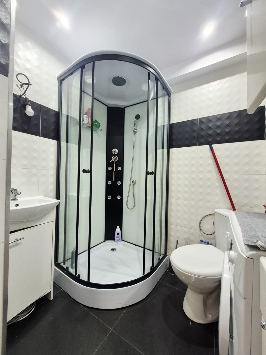 Ogrzewanie z sieci miejskiej, ciepła woda z piecyka gazowego.