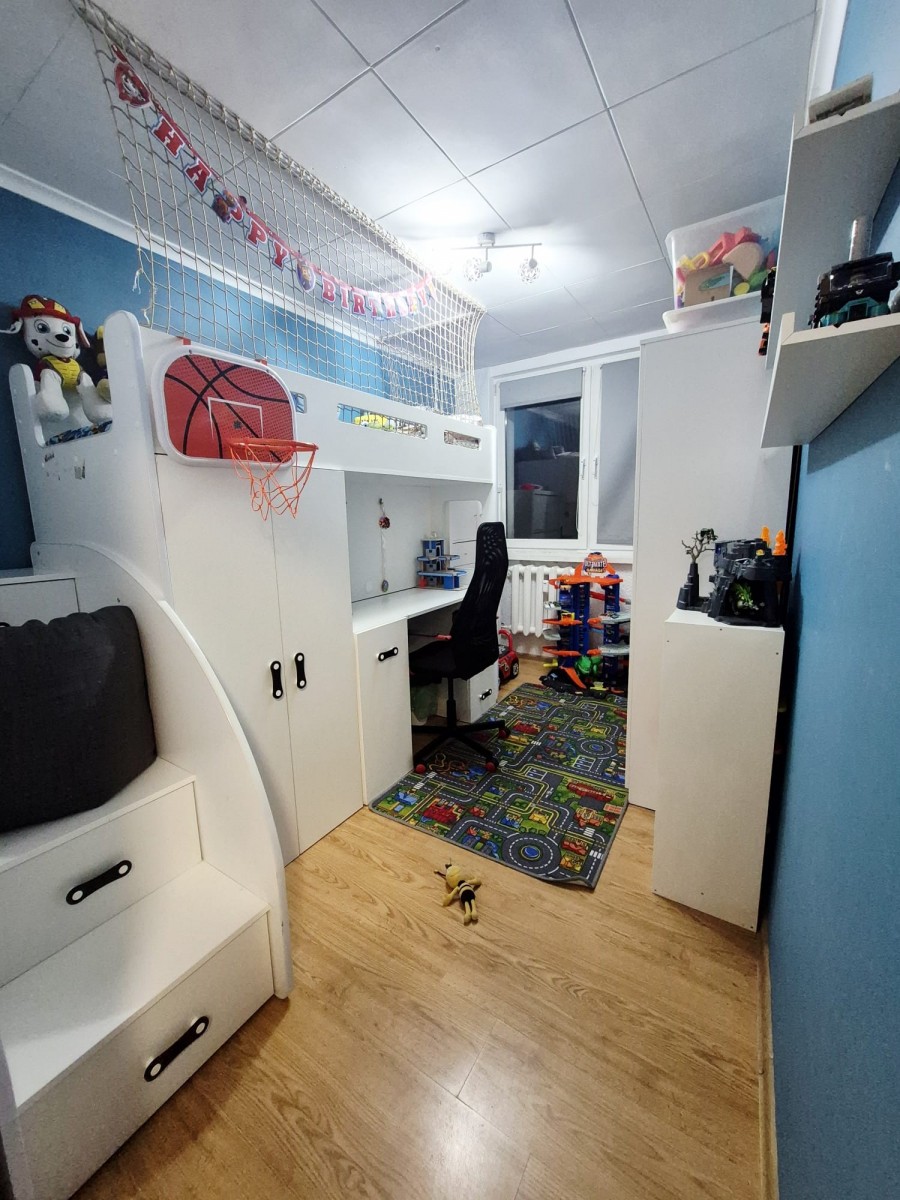 Mieszkanie o powierzchni 38 m², położone na 3. piętrze w 4-piętrowym bloku z wielkiej płyty.