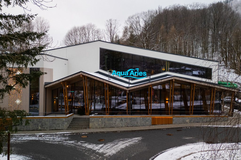 Budynek- Aries Hotel & SPA w Szczyrku to luksusowy obiekt hotelowy z komfortowymi, designerskimi pokojami oferującymi piękny widok na beskidzkie stoki. Obiekt znany z wysokiego standardu usług i regionalnej architektury