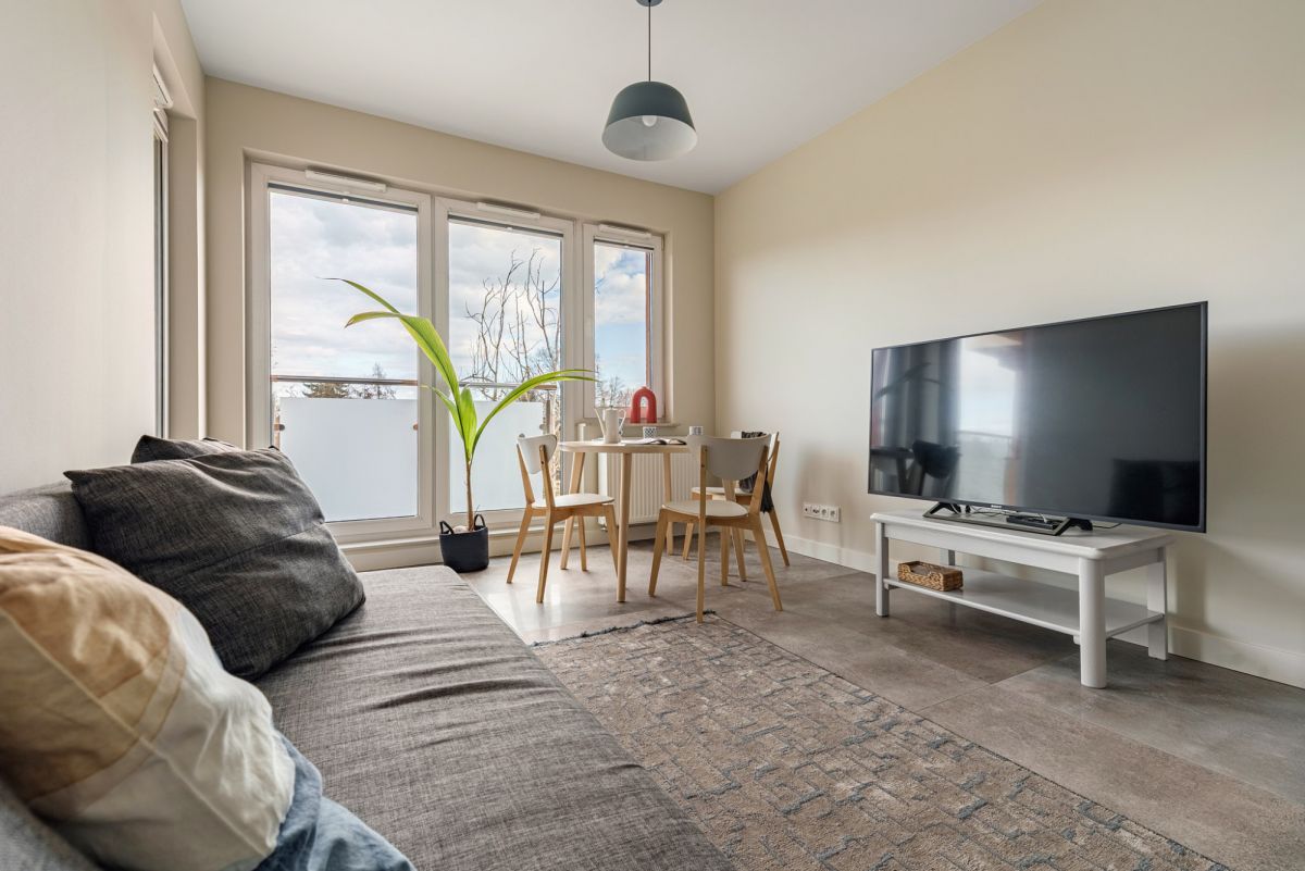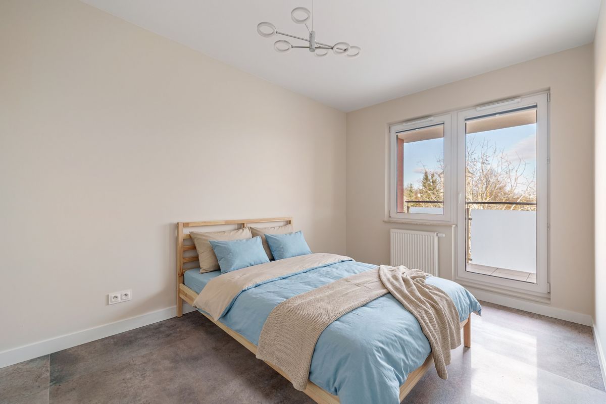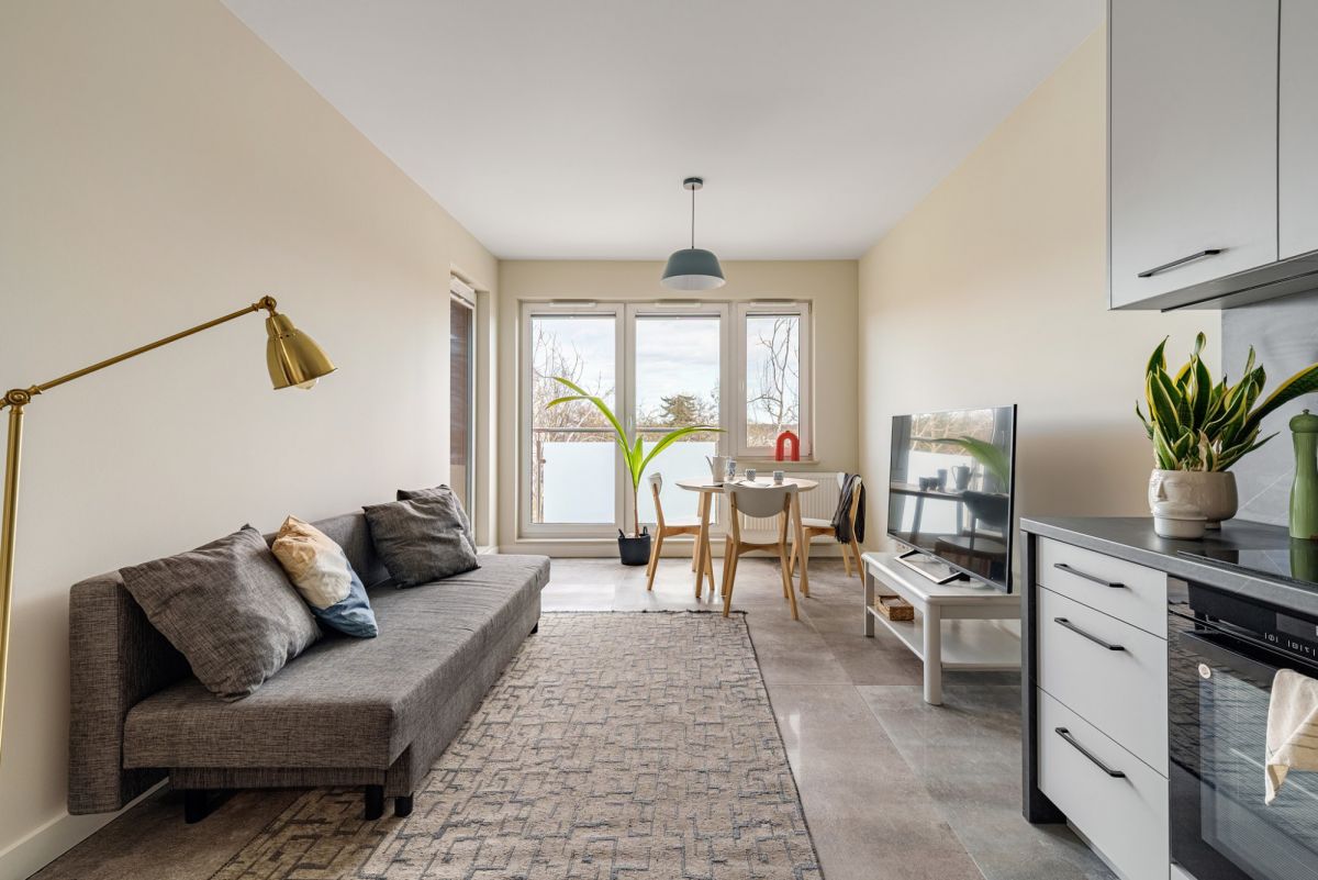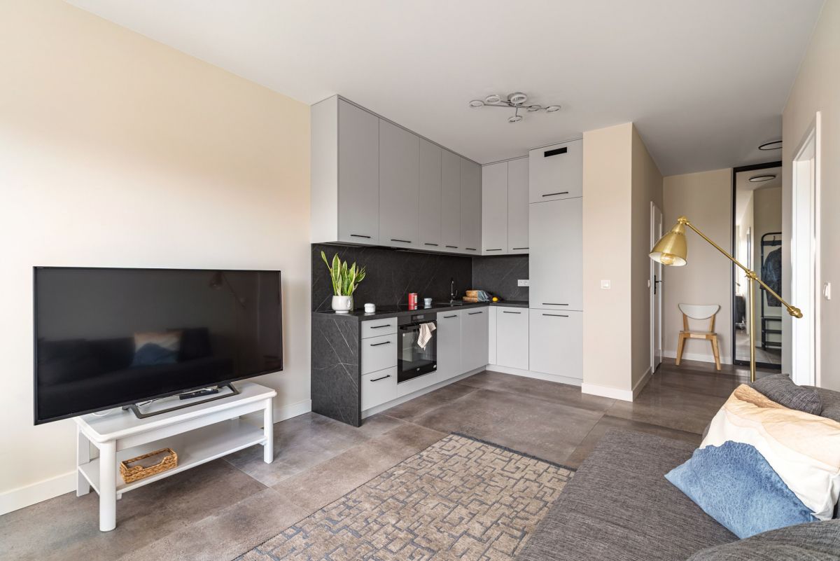 Mieszkanie jest gotowe do wprowadzenia - zostało urządzone w nowoczesnym stylu i zaprojektowane w sposób bardzo funkcjonalny. Główną przestrzeń mieszkania stanowi jasny salon z aneksem kuchennym, z którego prowadzi wyjście na loggię - idealne miejsce na poranną kawę lub chwilę relaksu. Dużym atutem jest oddzielna sypialnia z pojemną szafą w zabudowie, a także kolejna duża szafa w przedpokoju, dzięki czemu mieszkanie oferuje dużo miejsca do przechowywania i pozostaje uporządkowane oraz komfortowe w codziennym użytkowaniu.