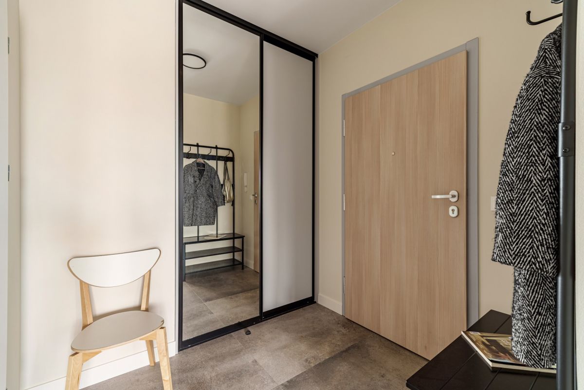 Mieszkanie zostało urządzone w nowoczesnym stylu, z dbałością o estetykę i funkcjonalność. Duże okna zapewniają dostęp do naturalnego światła i sprawiają, że wnętrze jest przestronne i jasne.