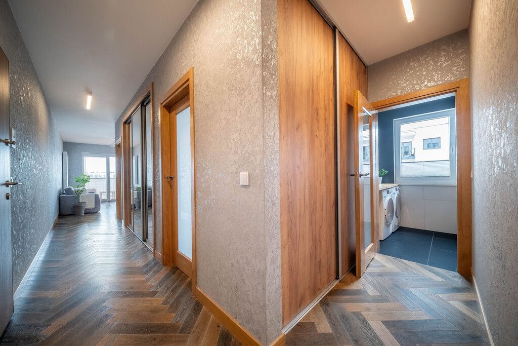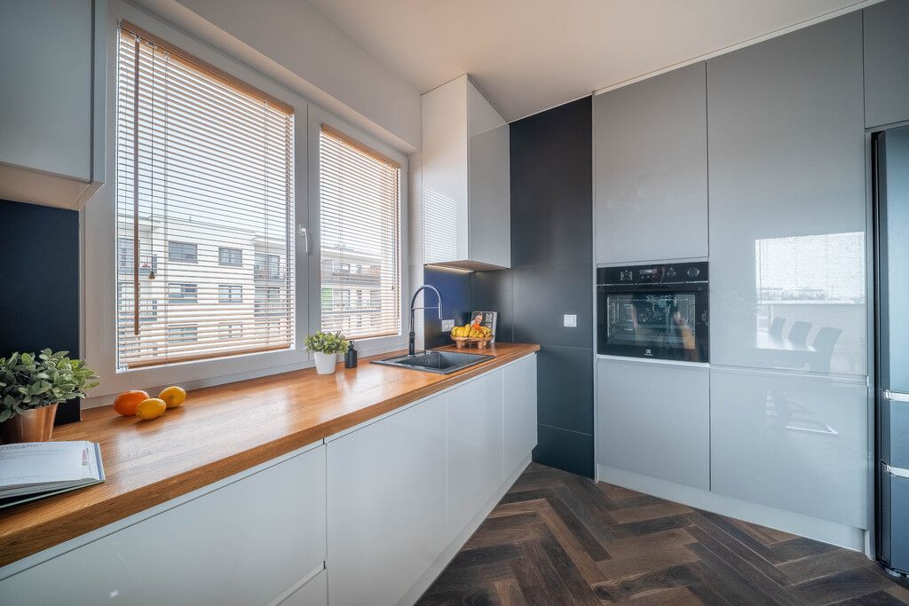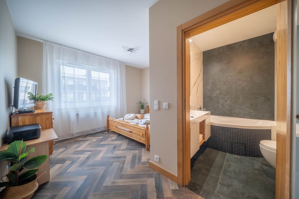 Apartament zaprojektowany i wykończony w wysokim standardzie. Świetnie rozplanowana i wykorzystana przestrzeń. Meble w kuchni i łazience wykonane na zamówienie przez stolarza. Mieszkanie wykończone przy użyciu bardzo dobrej jakości materiałów (m. in.parkiet w pokojach i salonie, szafki - fornir, meble na zamówienie, stół drewniany) z dbałością o szczegóły i detale. Salon z wyjściem na przepiękny duży i przestronny balkon 9,45 m2. Budynek wybudowany w podwyższonym standardzie z 2021 roku.