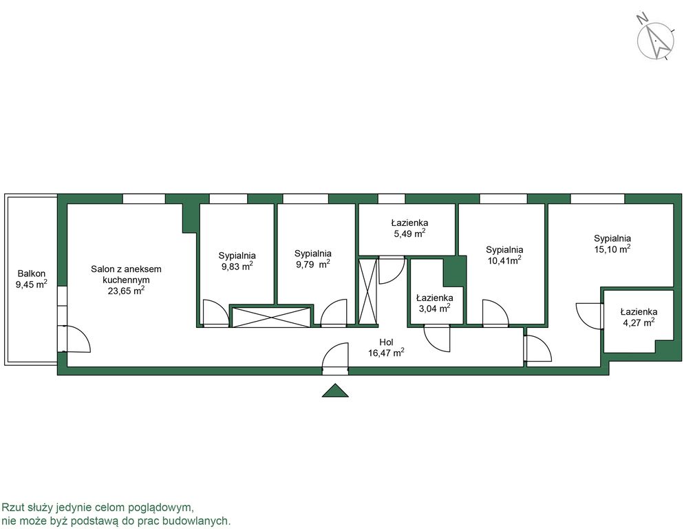 KIERUNEK OKIEN: salon- północy-zachód, pokoje- północ
