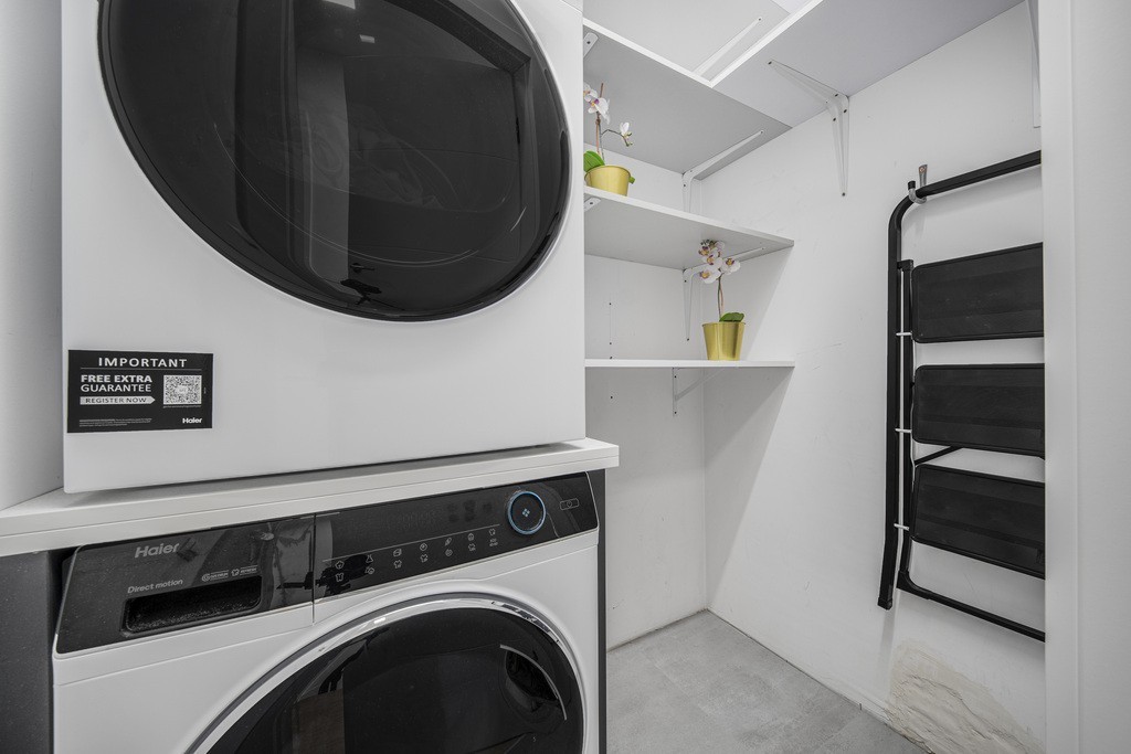 Lokal sprzedawany jest w cenie obejmującej zabudowę kuchenną wraz ze sprzętem AGD, meblościankę, kanapę, kompletnie wyposażoną łazienkę i pralnię.