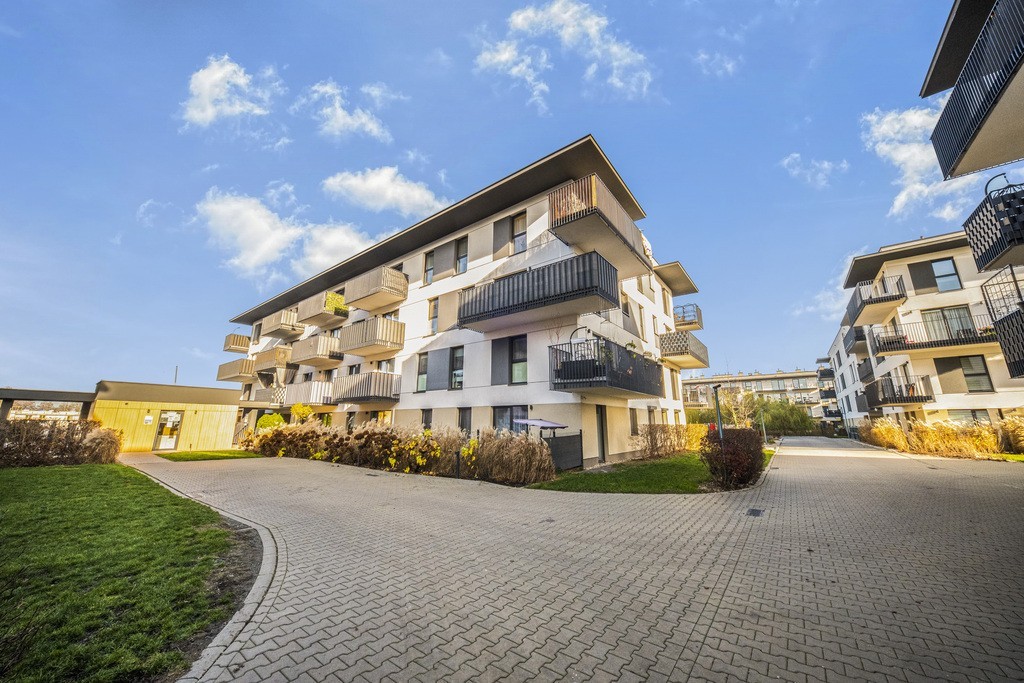 Na terenie osiedla znajduje się oczko wodne, plac zabaw, siłownia plenerowa, rowerownia, parking dla gości oraz przestrzeń rekreacyjna z trawnikiem do wypoczynku i zabaw dla dzieci.