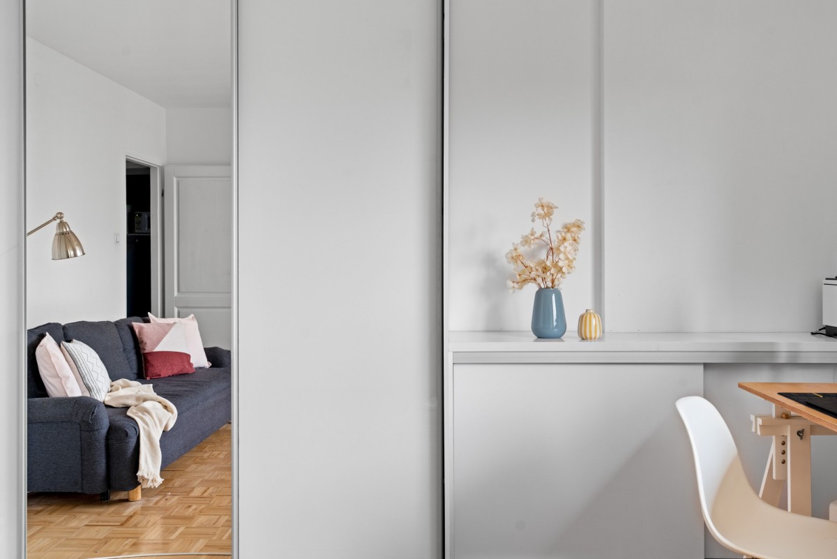Mieszkanie po remoncie w 2020 roku, stałe zabudowy, w tym kuchnia i szafy, pozostają w cenie. Układ pomieszczeń daje duży potencjał aranżacyjny - istnieje możliwość wydzielenia niezależnej sypialni, co czyni ofertę jeszcze bardziej atrakcyjną i funkcjonalną.