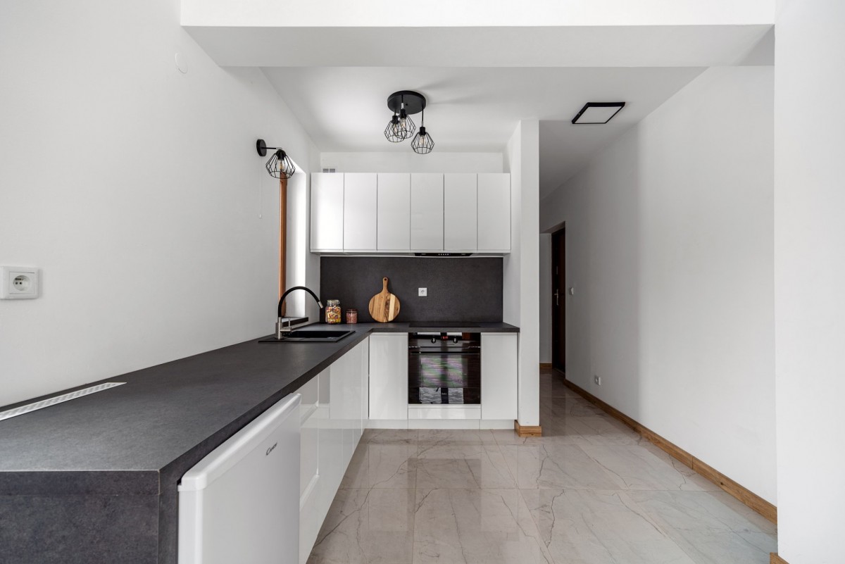 - pokój dzienny z aneksem kuchennym (istnieje możliwość wydzielenia oddzielnej kuchni z oknem lub małej sypialni - niewielkim kosztem)