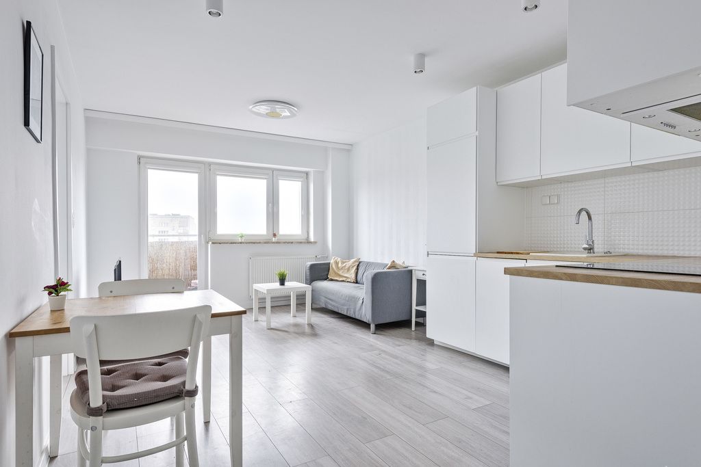 - Salon z aneksem kuchennym. Z salonu wyjście na balkon o powierzchni ok. 1m2.