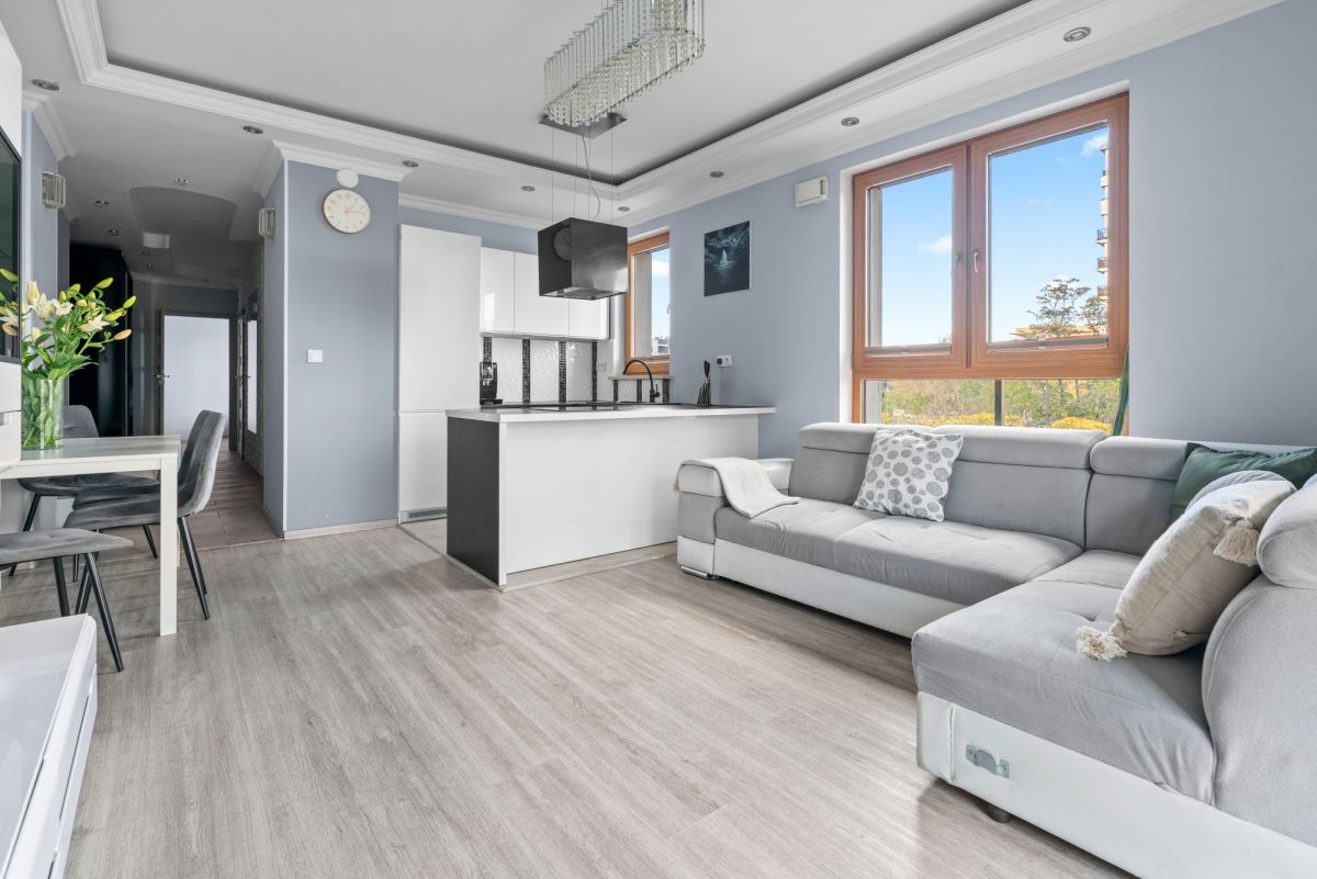Jasne i funkcjonalne 3-pokojowe mieszkanie z balkonem, położone na 1. piętrze nowoczesnego budynku z 2018 roku przy ul. Rudnickiego, na zielonych Bielanach.