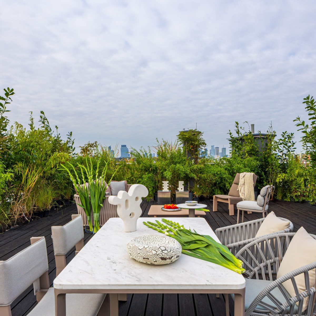 Największą perłą jest ponad 160-metrowy taras na dachu, z którego rozpościera się niezmienny, panoramiczny widok na miasto i zieleń Górnego Mokotowa. To przestrzeń tak wyjątkowa, że oferuje doświadczenie prywatności, spokoju i swobody, którego nie znajdzie się w żadnym innym apartamencie w Warszawie.