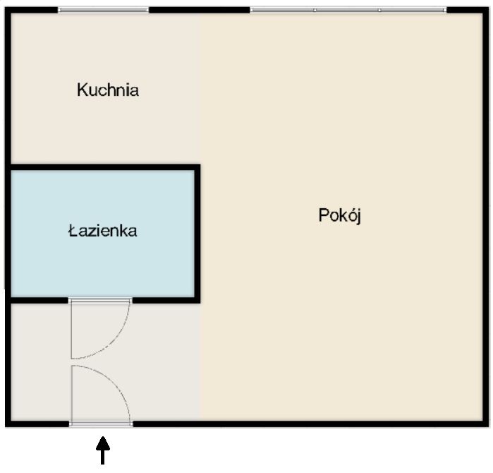 Mieszkanie składa się z pokoju połączonego z aneksem kuchennym, łazienki a wanną , na przedpokoju jest miejsce na szafę.