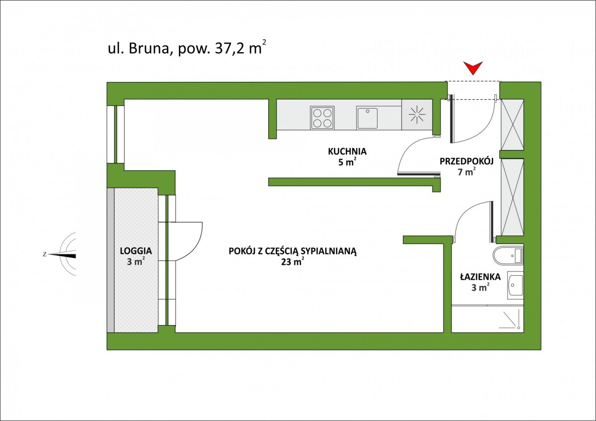 Pokój dzienny z częścią sypialną 23m.