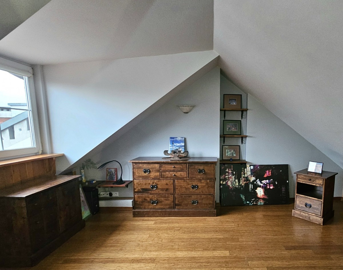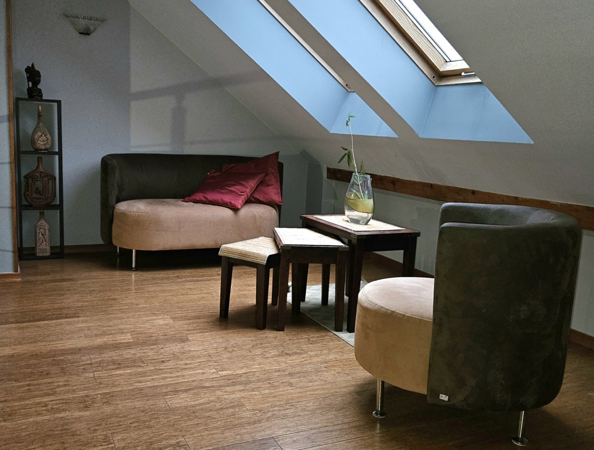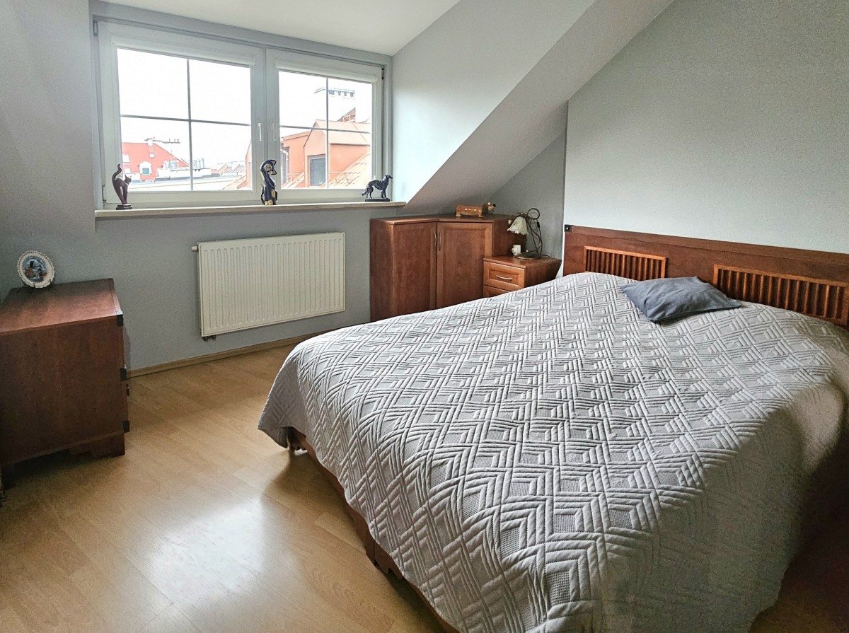 Dwupoziomowy apartament o powierzchni całkowitej 125 m² (95 m² w KW + 30 m² solidnej antresoli), powstały w wyniku kompleksowej adaptacji poddasza w 2007 roku.