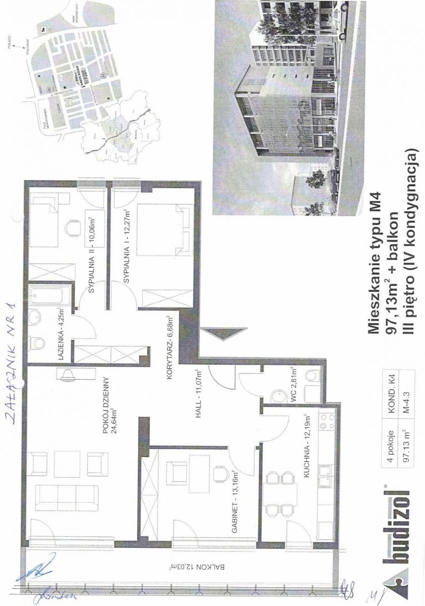 - Trzy niezależne pokoje: 13,16 m², 10,06 m², 12,27 m²