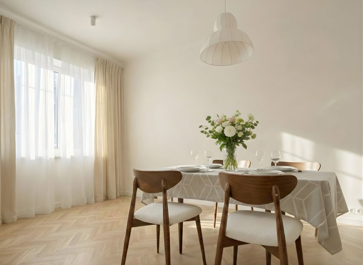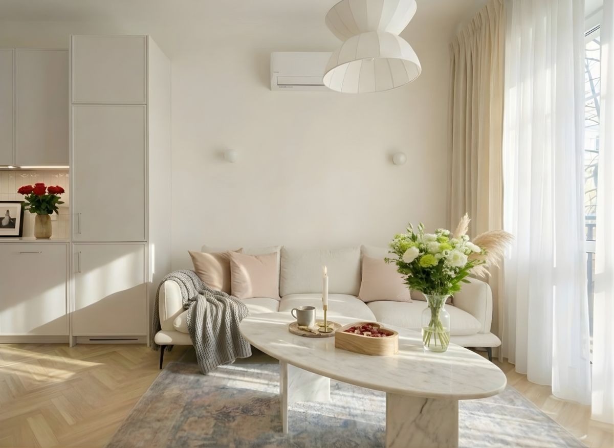 To mieszkanie zaskakuje przestrzenią i światłem - mimo kompaktowego metrażu daje poczucie komfortu, które zwykle spotyka się w znacznie większych lokalach. Położone w kameralnej części Saskiej Kępy, łączy przytulny charakter z dopracowaną, nowoczesną formą.