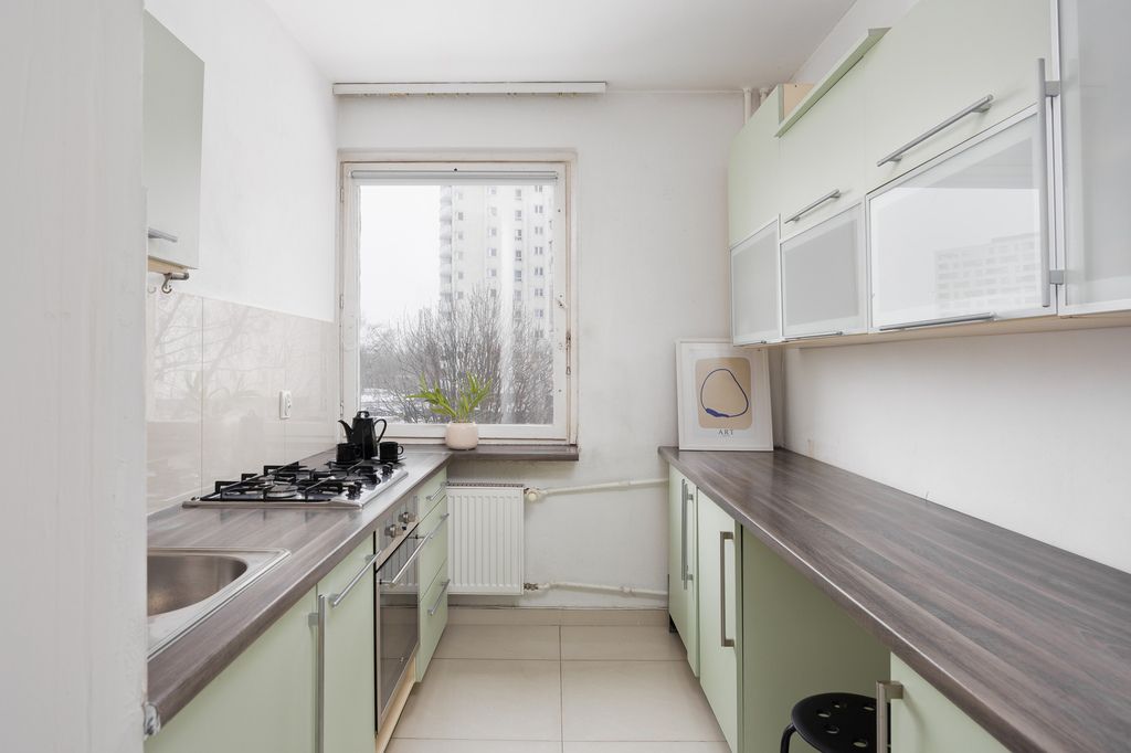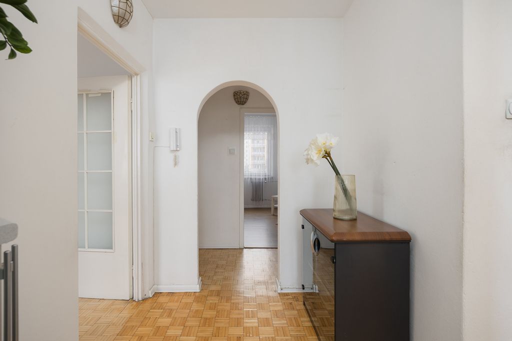 Ekspozycja południowo-północna sprawia, że wnętrza są jasne przez cały dzień. Brak zabudowy zaglądającej w okna zapewnia prywatność – co na dużym osiedlu jest ogromnym atutem. Do mieszkania przynależy piwnica oraz dwie komórki lokatorskie (z możliwością wynajmu od spółdzielni). Istnieje również opcja wynajmu naziemnego miejsca postojowego.