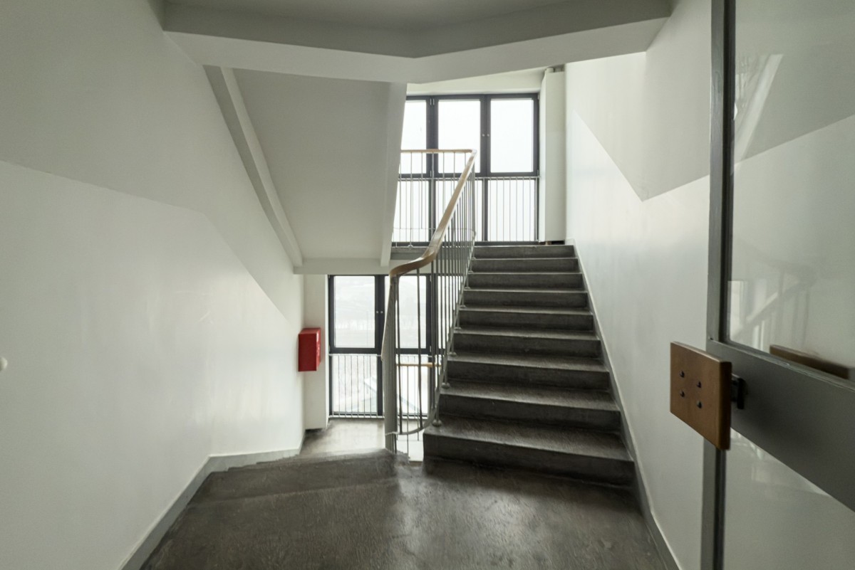 Mieszkanie znajduje się w charakterystycznym, szesnastopiętrowym punktowcu, wzniesionym w latach 70. (1971-1973) w ramach powojennego zagospodarowania terenu na Powiślu. Budynek jest