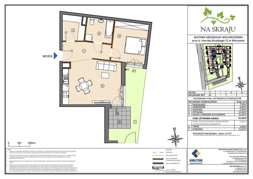 Lokal o powierzchni 51,54 m² położony jest na parterze budynku. Do mieszkania przynależy taras o powierzchni 3,90 m² oraz prywatny ogródek 11,97 m², które stanowią dodatkową przestrzeń do wypoczynku i relaksu. Stan deweloperski pozwala nowym właścicielom na dowolną aranżację wnętrza według własnych potrzeb i gustu.