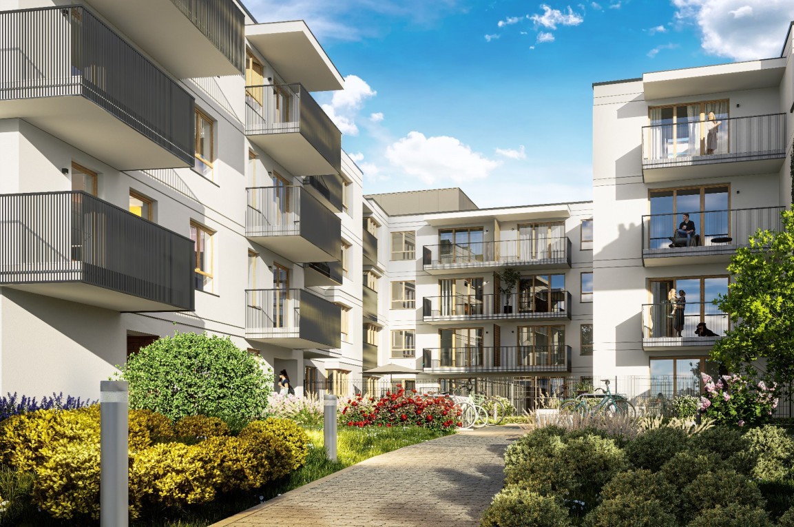 - system odzysku i wykorzystania wody deszczowej (m.in. do WC mieszkań i podlewania zieleni w częściach wspólnych),