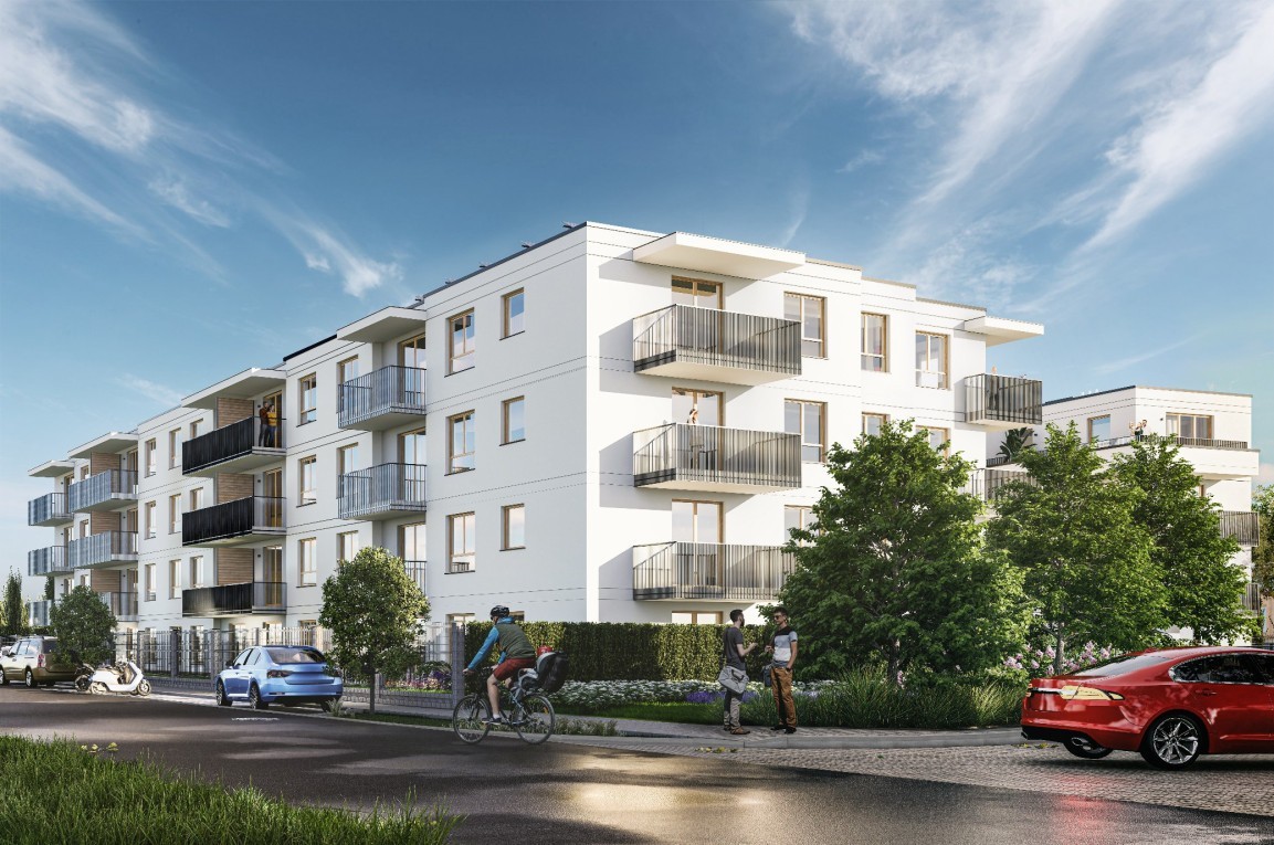 Inwestycja „Na Skraju” to kameralny, czterokondygnacyjny budynek z wewnętrznym patio otwartym na stronę południową. Wyposażony jest w ciche windy, przestronne części wspólne oraz halę garażową z miejscami postojowymi i stojakami na rowery.