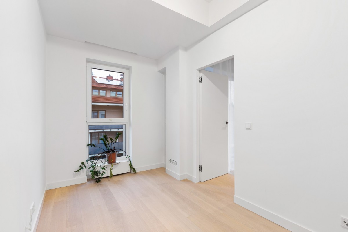 całe mieszkanie zostało urządzone z wykorzystaniem materiałów premium - naturalnych, trwałych i ponadczasowych. Drewniany parkiet, ukryte drzwi oraz doskonałej jakości armatura, oświetlenie i AGD nadają wnętrzu wyjątkowego charakteru.