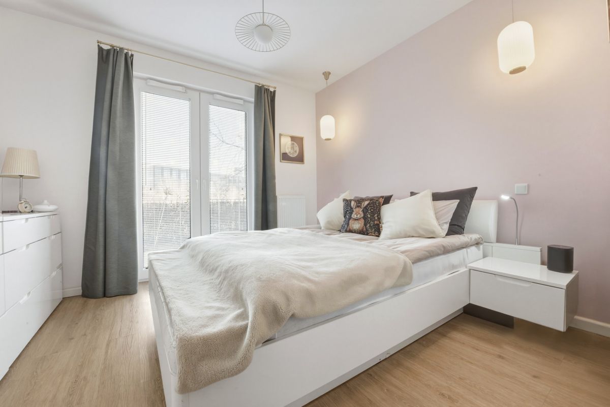 This apartment combines the convenience of city living with the intimate character of a green part of Wilanów. An ideal place for those who value a functional layout, modern architecture, and private outdoor space.