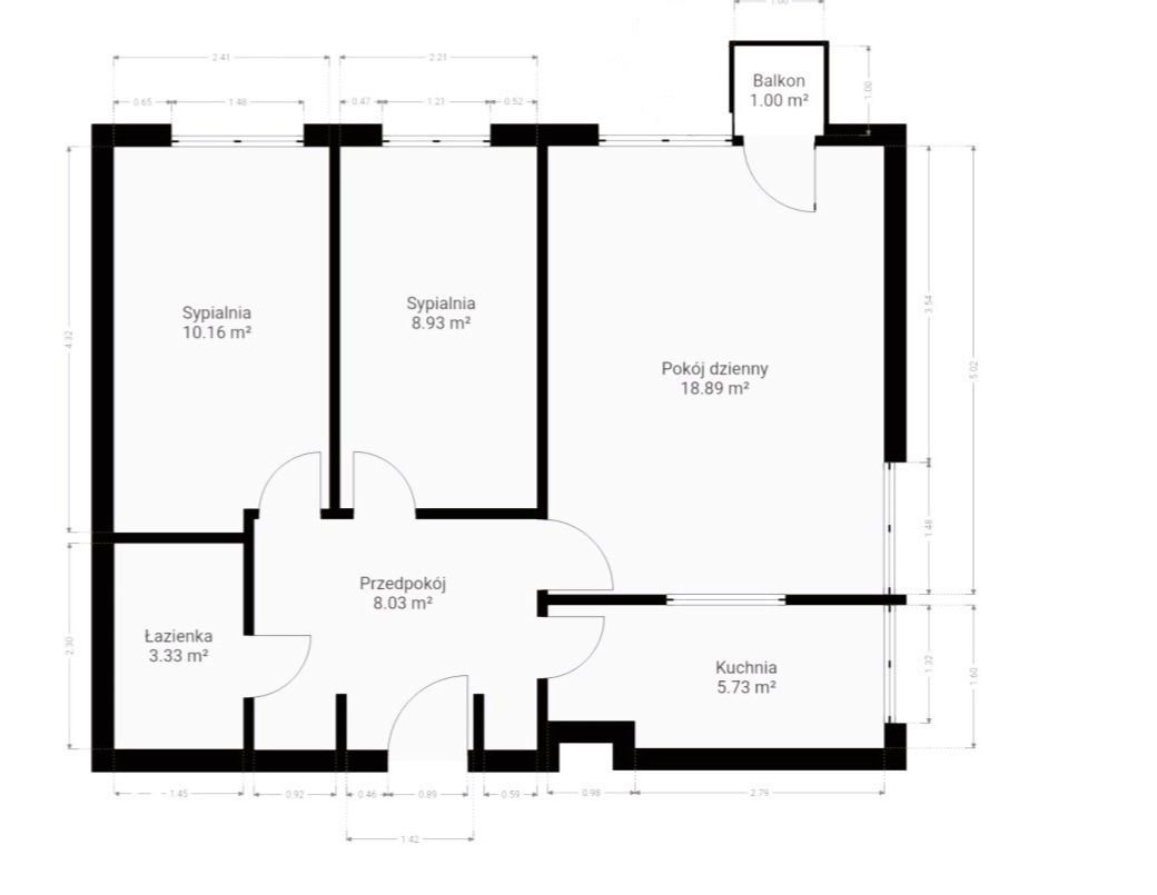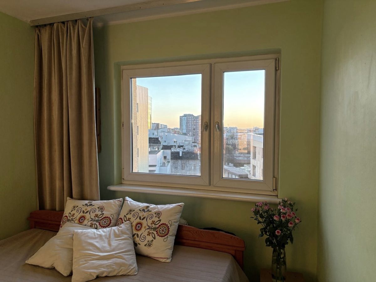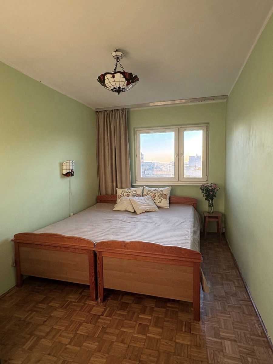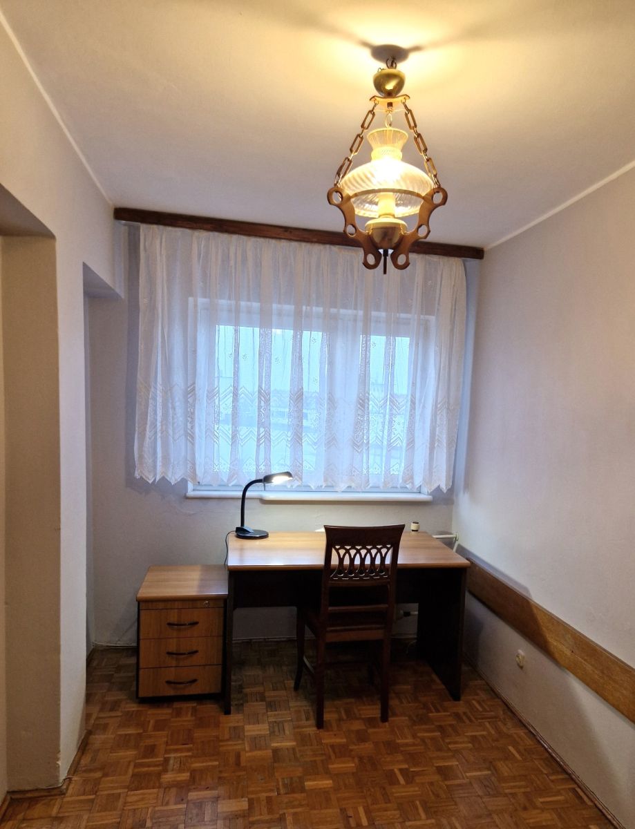 Lokal widny, do wszystkich pomieszczeń bezpośredni dostęp z obszernego przedpokoju z miejscem na dwie szafy wnękowe. Pokoje 19, 10 i 9 mkw., kuchnia 6 mkw. z oknem - możliwość łatwego otwarcia kuchni i połączenia w formie aneksu z przylegającym salonem. Z pokoju dziennego wyjście na niewielki balkon po stronie zachodniej, z widokiem na biznesowe centrum. Na podłogach w pokojach mozaika parkietowa - nadaje się do cyklinowania, w kuchni i łazience terakota. Mieszkanie wymaga remontu . Do lokalu przynależy piwnica.