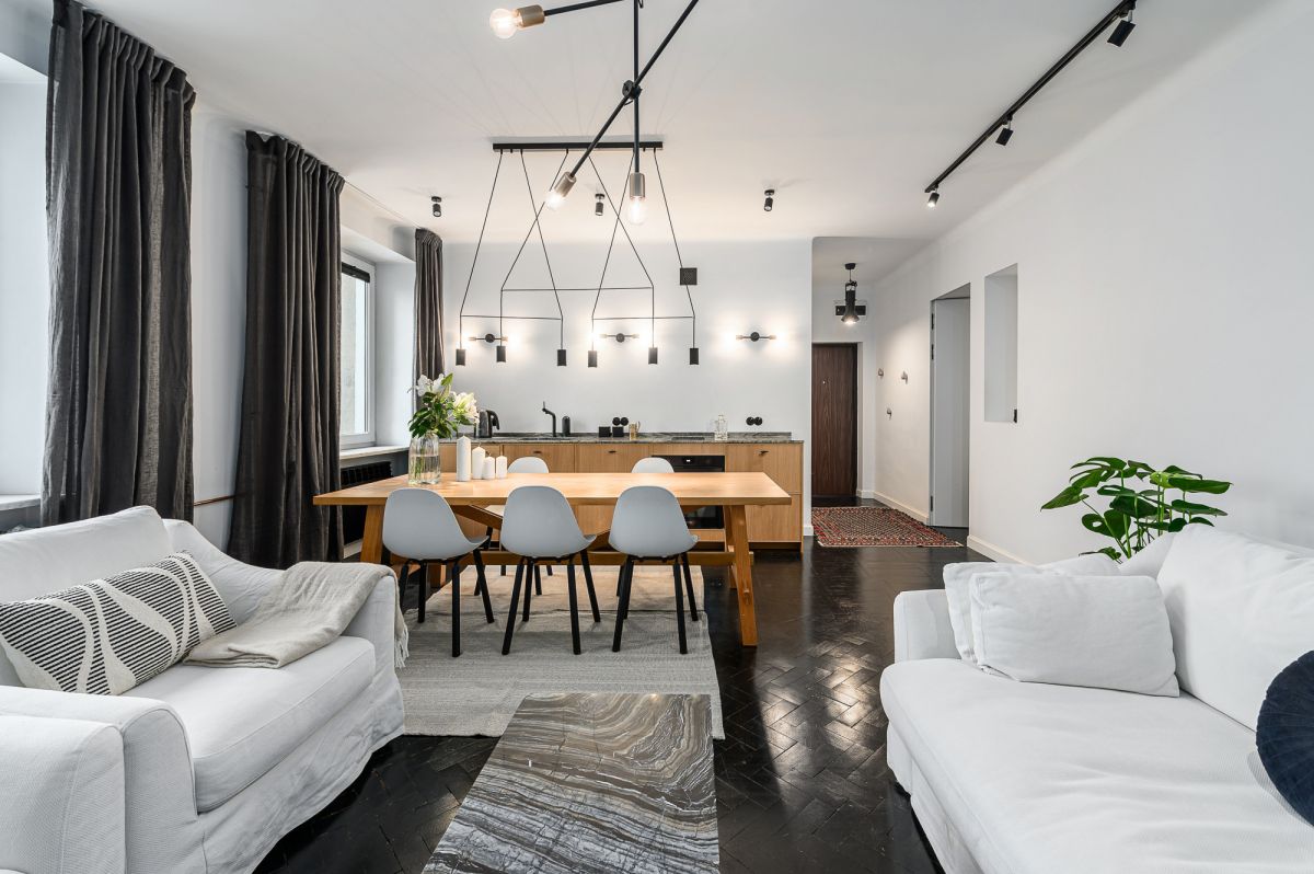 Mieszkanie przeszło generalny remont, zachowując jednocześnie elegancki, ponadczasowy charakter.