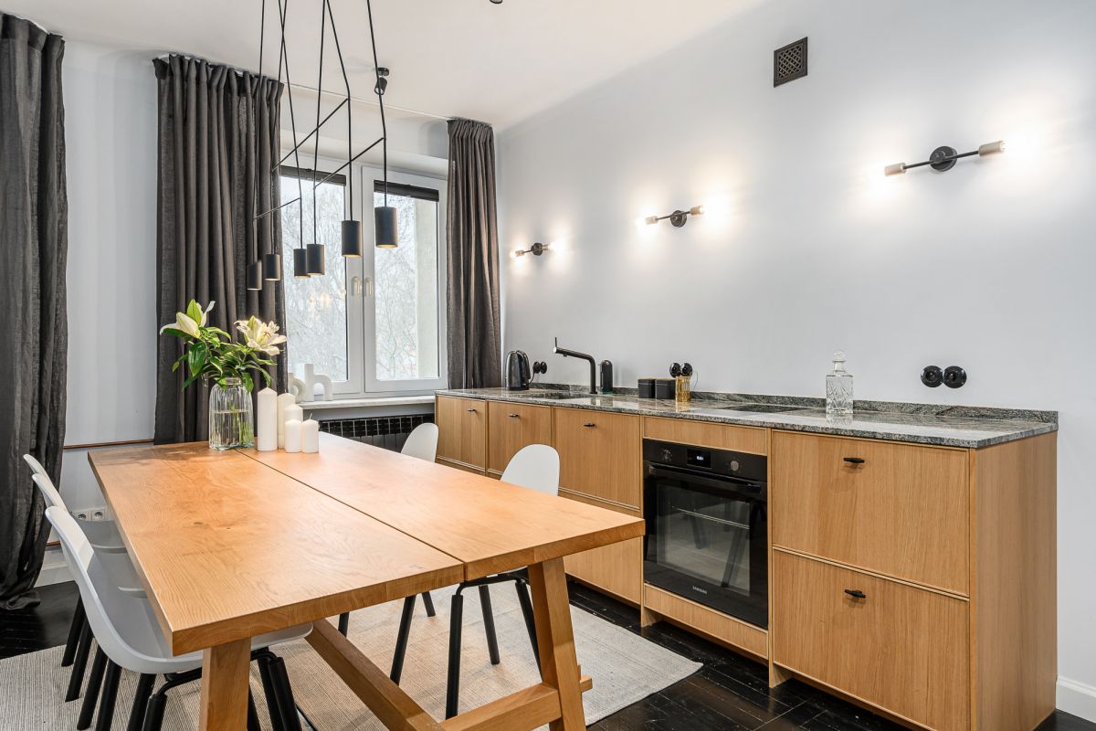 Mieszkanie przeszło generalny remont, zachowując jednocześnie elegancki, ponadczasowy charakter.