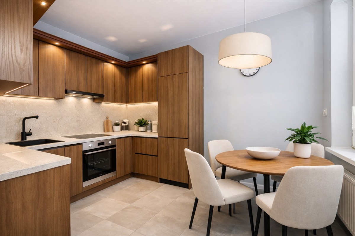 Mieszkanie zostało zaprojektowane w sposób wyjątkowo przemyślany - wyraźnie wydzielono strefę dzienną oraz prywatną, co zapewnia wygodę zarówno w codziennym funkcjonowaniu, jak i podczas pracy zdalnej. Lokal jest wyjątkowo cichy, mimo bliskości centrum miasta, co czyni go idealnym wyborem dla osób ceniących spokój.