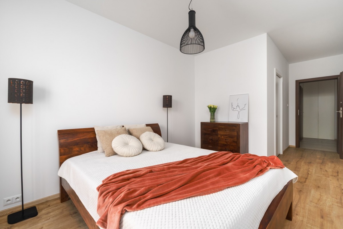 * Wygodna i słoneczna sypialnia z garderobą - ustawne pomieszczenie z wydzieloną garderobą zapewniającą wygodną przestrzeń do przechowywania.