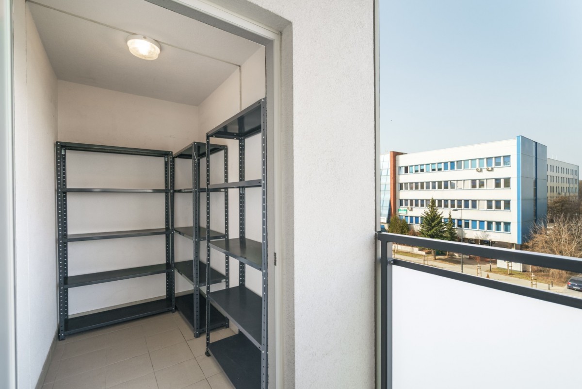 * Komórka lokatorska o powierzchni: 3,3 m² (wejście z większego balkonu)