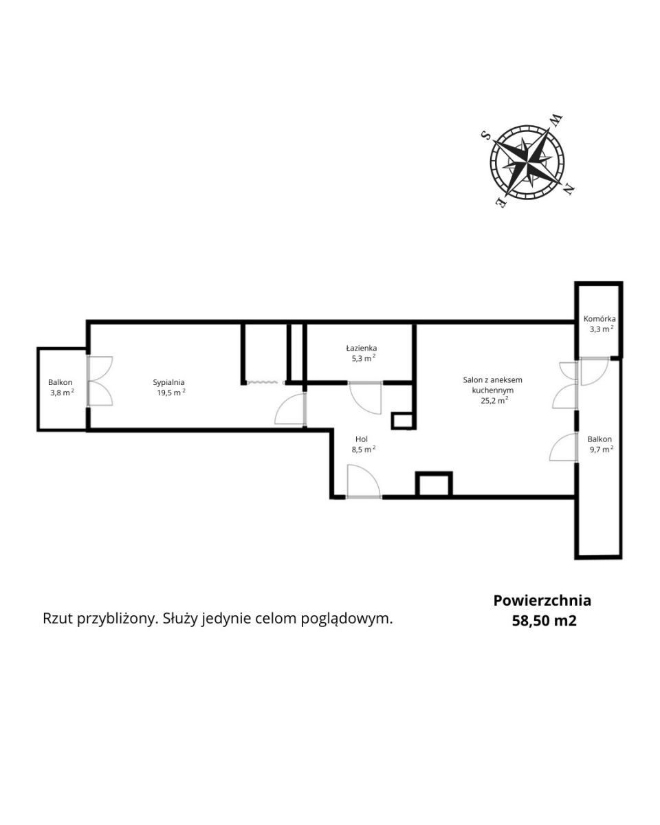 * Powierzchnia: 58,5 m²