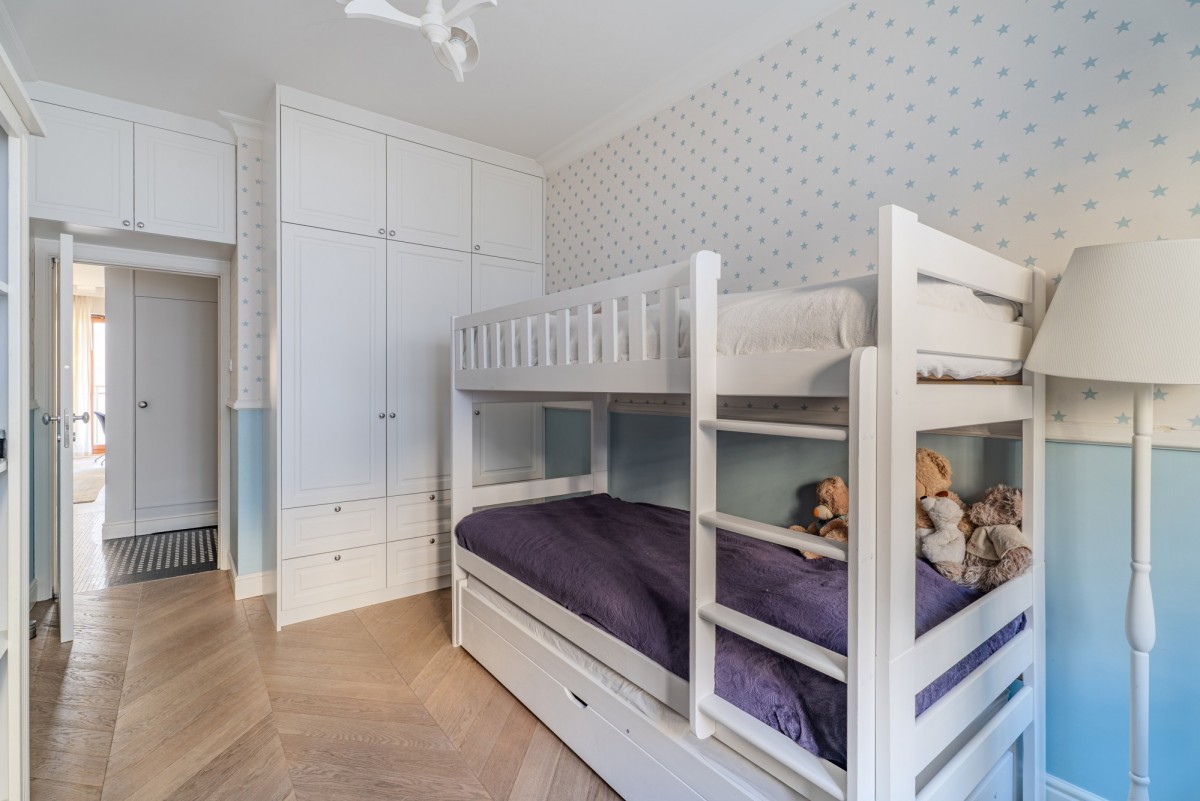 Większość mebli w mieszkaniu została wykonana na wymiar, dzięki czemu wnętrze jest bardzo eleganckie oraz jest dużo przestrzeni do przechowywania.