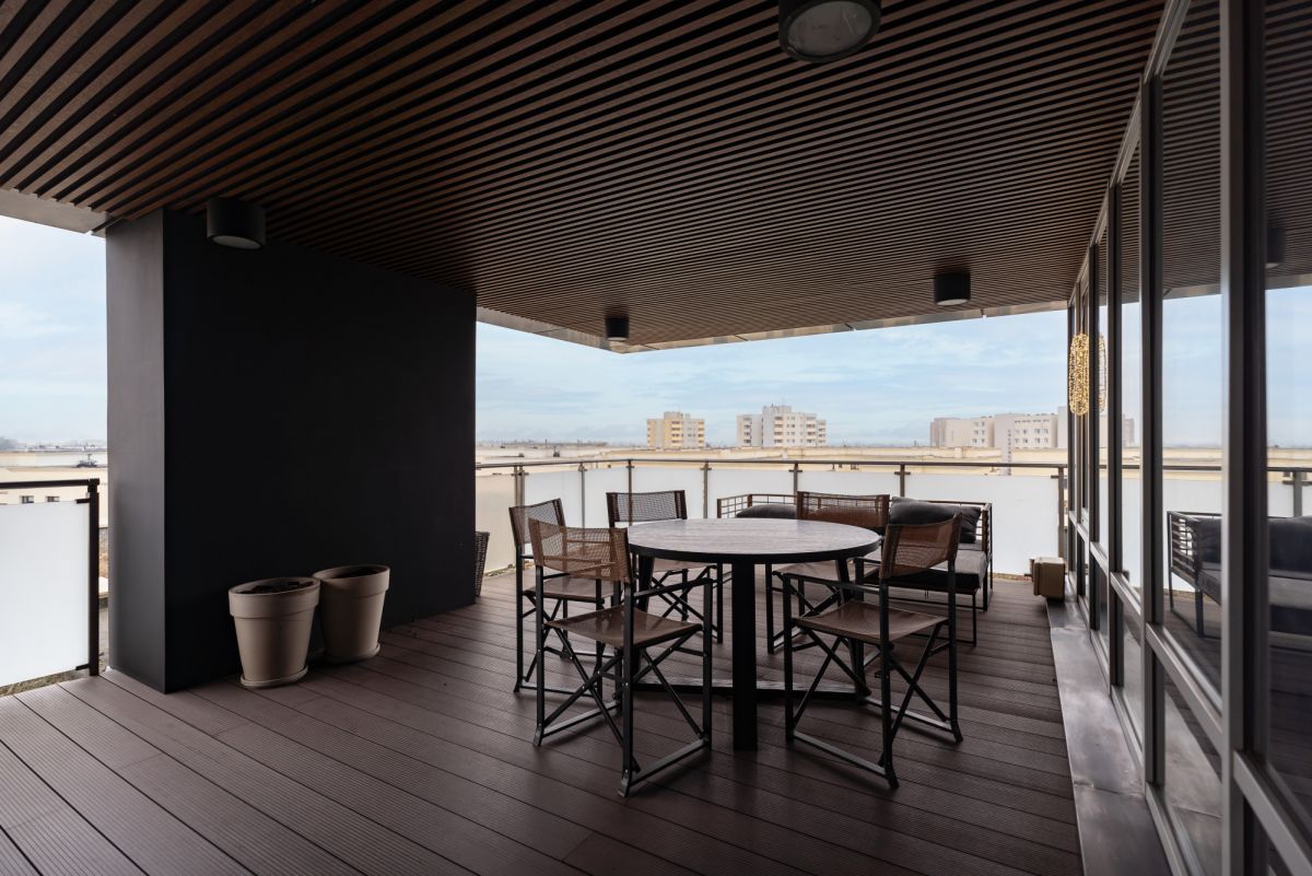 Penthouse znajduje się na ostatnim, VI piętrze nowoczesnego apartamentowca. Winda wjeżdża bezpośrednio do mieszkania, a dodatkowa kotara antywłamaniowa zapewnia pełne bezpieczeństwo i prywatność. Do apartamentu przynależy rodzinne miejsce postojowe w garażu podziemnym oraz komórka lokatorska (płatne dodatkowo 200 000 zł). Istnieje możliwość dokupienia kolejnych miejsc.