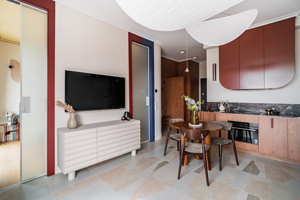 Standard wykończenia: nowoczesny design inspirowany stylistyką morską, obłe formy, szlachetne materiały, wysokie drzwi, mieszkanie w pełni umeblowane i wyposażone.