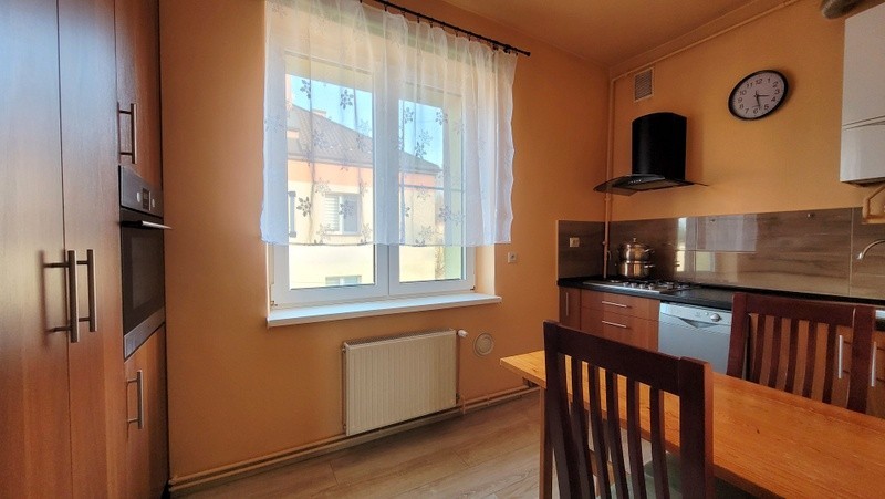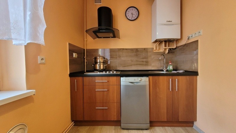 Kuchnia została wykonana w nowej zabudowie i pozostaje na wyposażeniu wraz ze sprzętem AGD: kuchenka, piekarnik, lodówka, zmywarka oraz pralka. Istnieje możliwość zakupu mieszkania z umeblowaniem widocznym na zdjęciach, co czyni ofertę jeszcze bardziej komfortową.