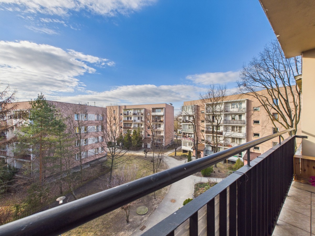 Duży balkon stanowi dodatkową przestrzeń do wypoczynku.