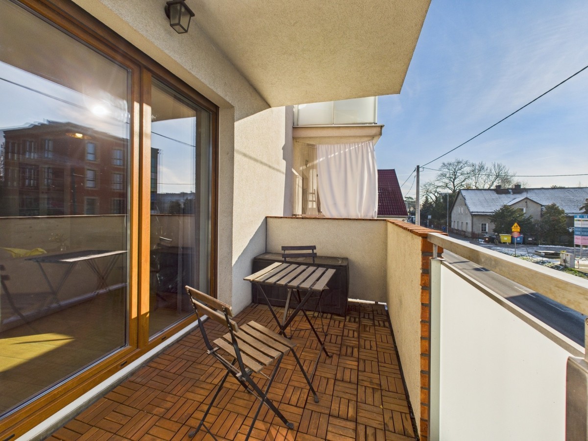• Balkon (7 m²) - ustawny, z miejscem na stolik i krzesła.