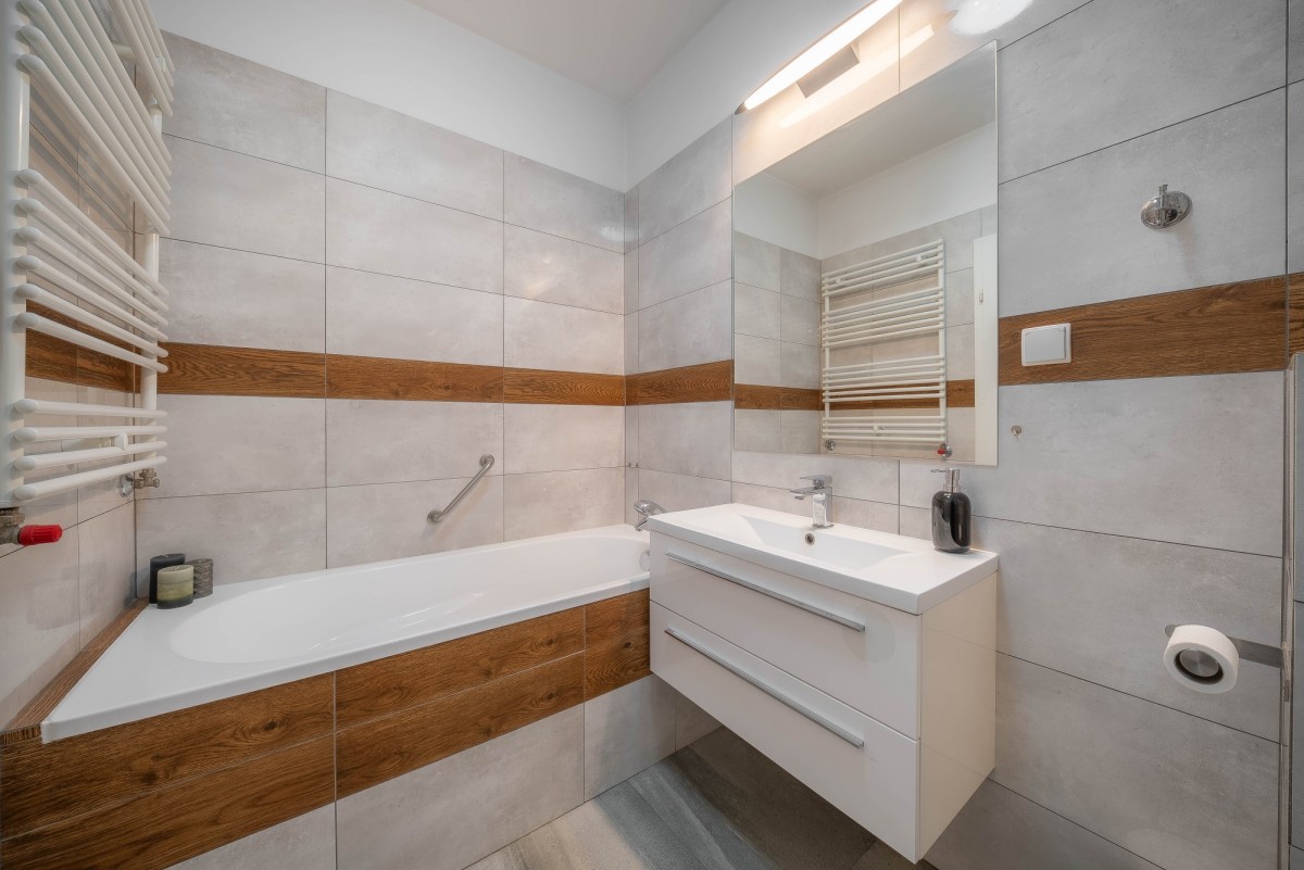 Dwie łazienki - jedna z wanną, druga z prysznicem.