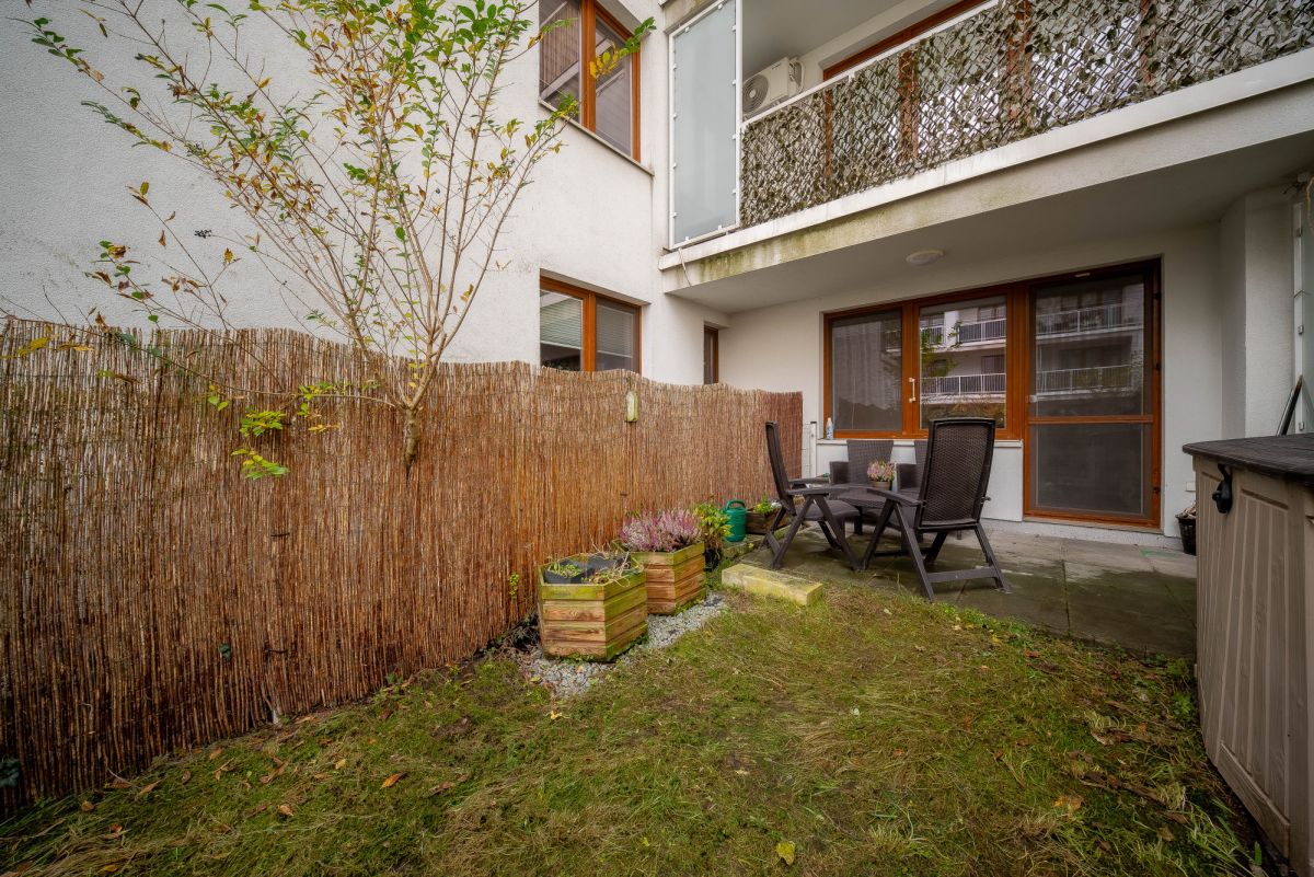 Prywatny ogródek 30 m² z wyjściem z salonu - świetny na poranną kawę, relaks po pracy lub przestrzeń dla dziecka.