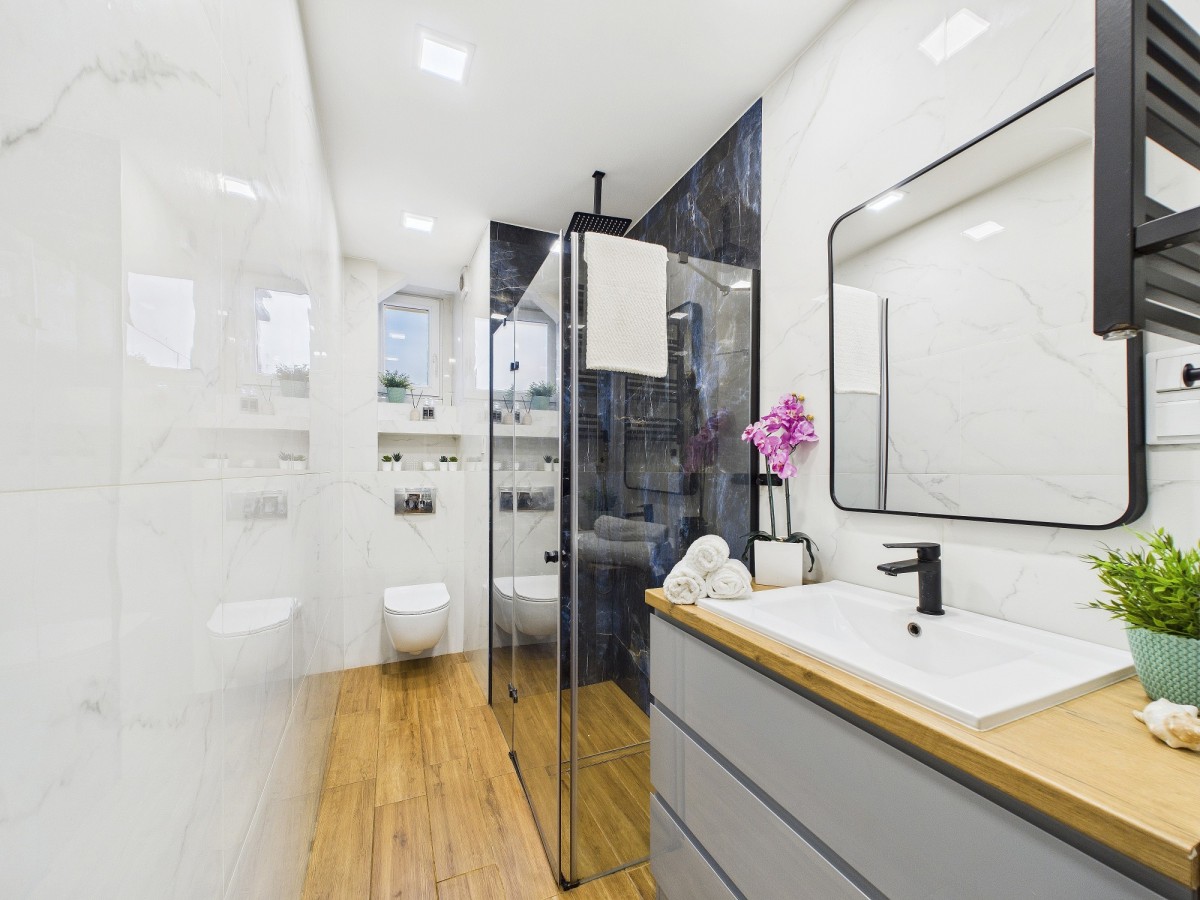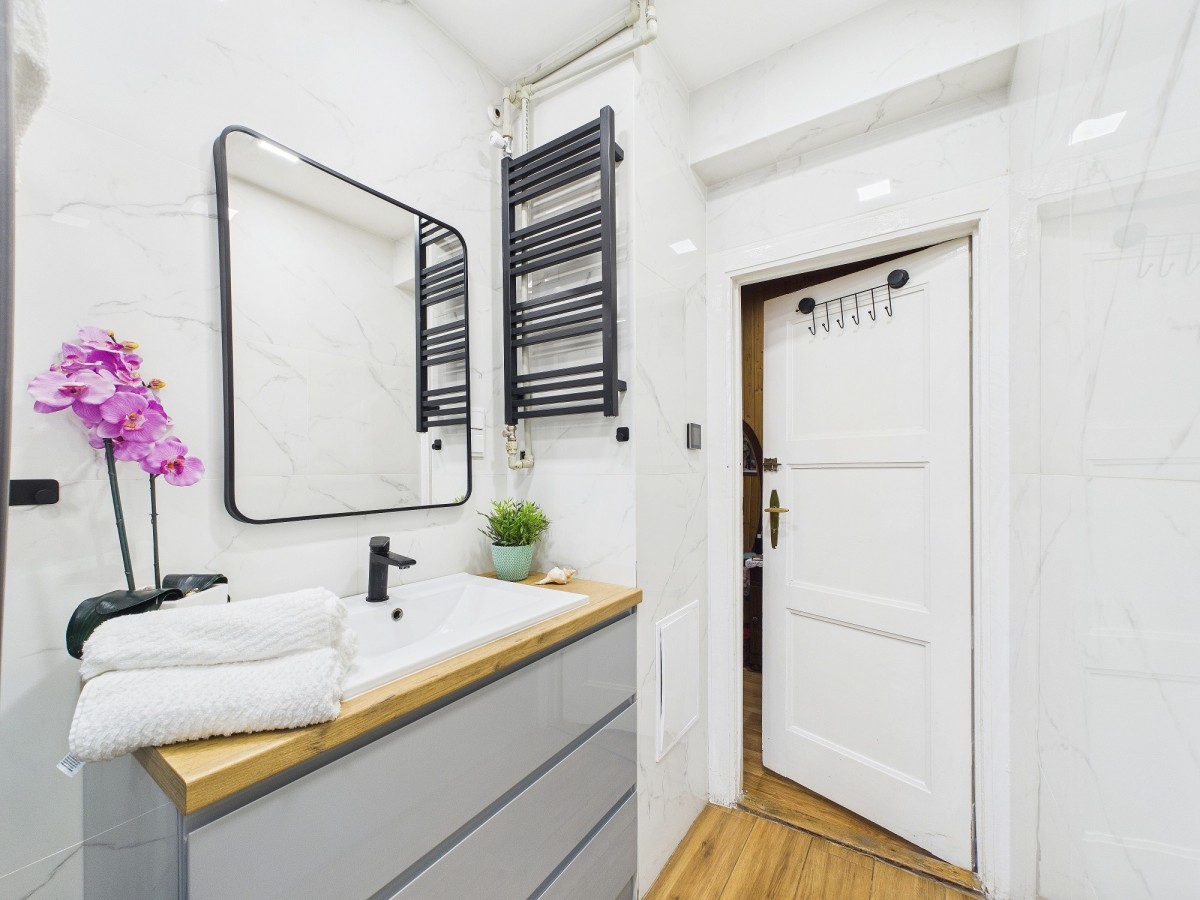 Łazienka z ogrzewaniem podłogowym daje komfort, który w kamienicach wciąż bywa luksusem. Kaloryfery, rolety zewnętrzne to solidna baza techniczna. To ważne, bo dzięki temu możesz skupić się na tym, co najprzyjemniejsze: tworzeniu wnętrza po swojemu.