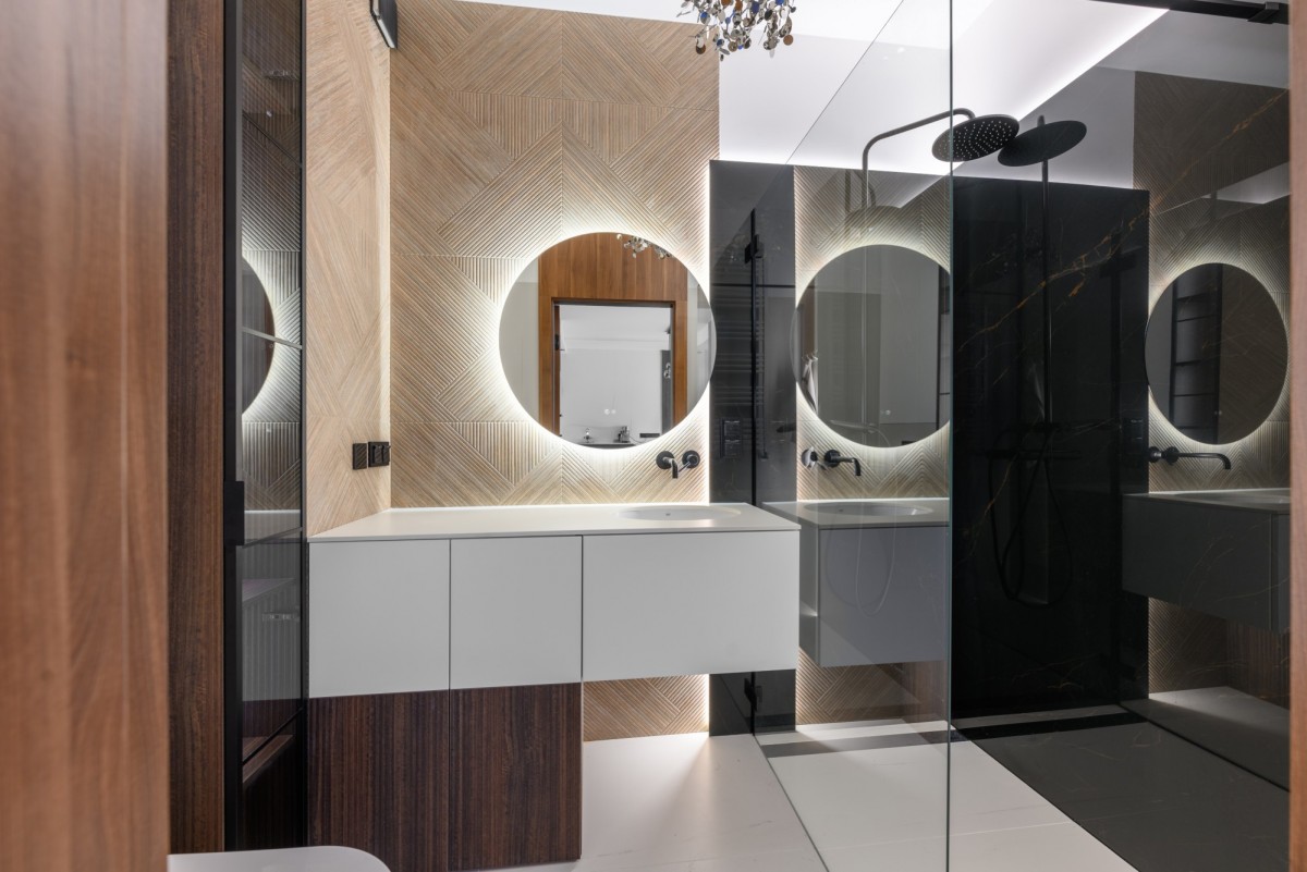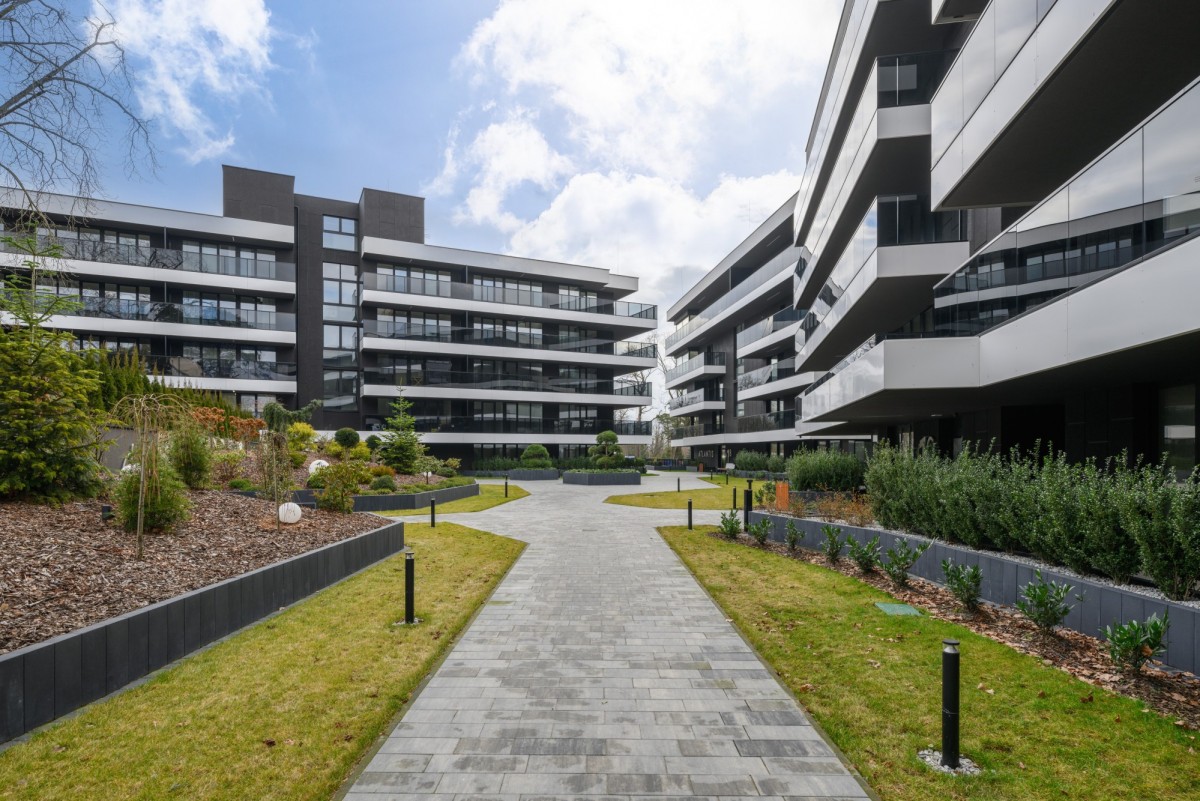 Wysokiej klasy wyposażenie: w pełni zabudowana kuchnia, klimatyzacja, system SMART HOME, oświetlenie LED, wielkoformatowe płyty podłogowe.