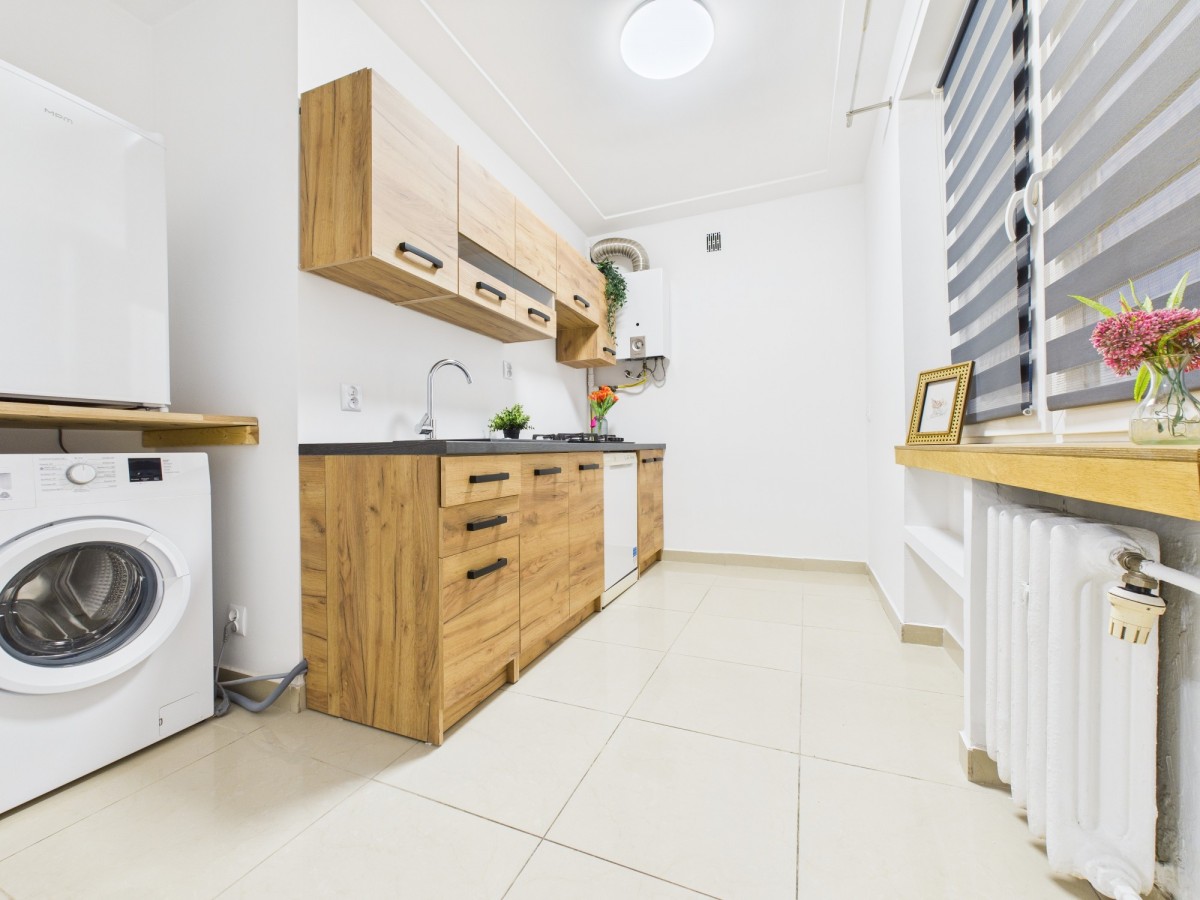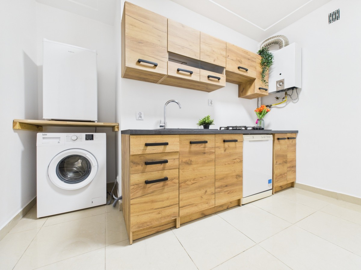 osobny aneks kuchenny z lodówką, pralką i zmywarką (wszystkie sprzęty nowe)