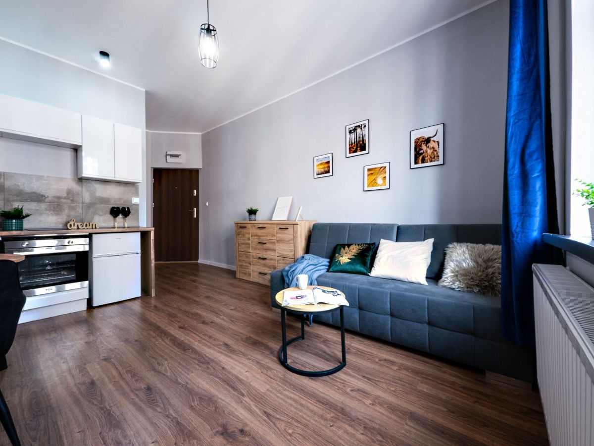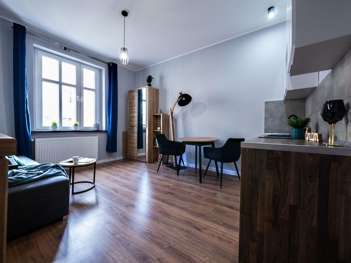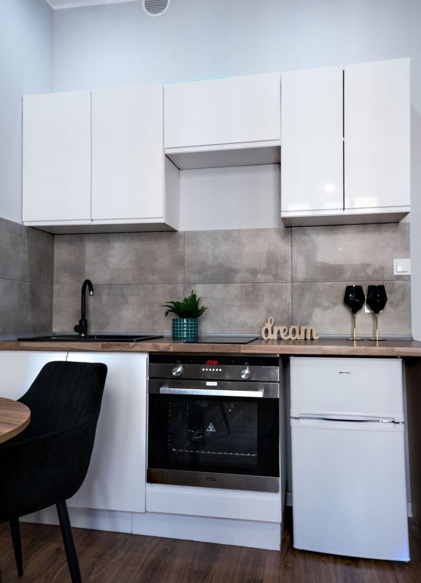 Na wyposażeniu płyta indukcyjna, piekarnik, lodówka i rozkładana kanapa.