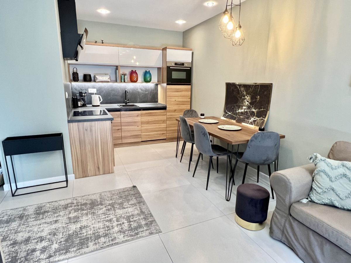 - Kuchnia wyposażona w wszystkie niezbędne sprzęty: szafki, zlew, lodówka, płyta grzewcza, piekarnik, zmywarka, okap.