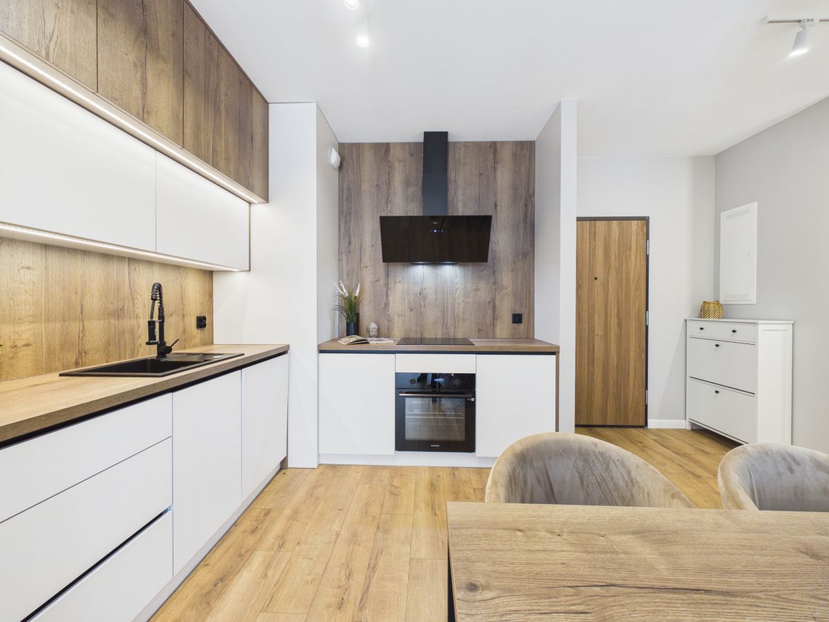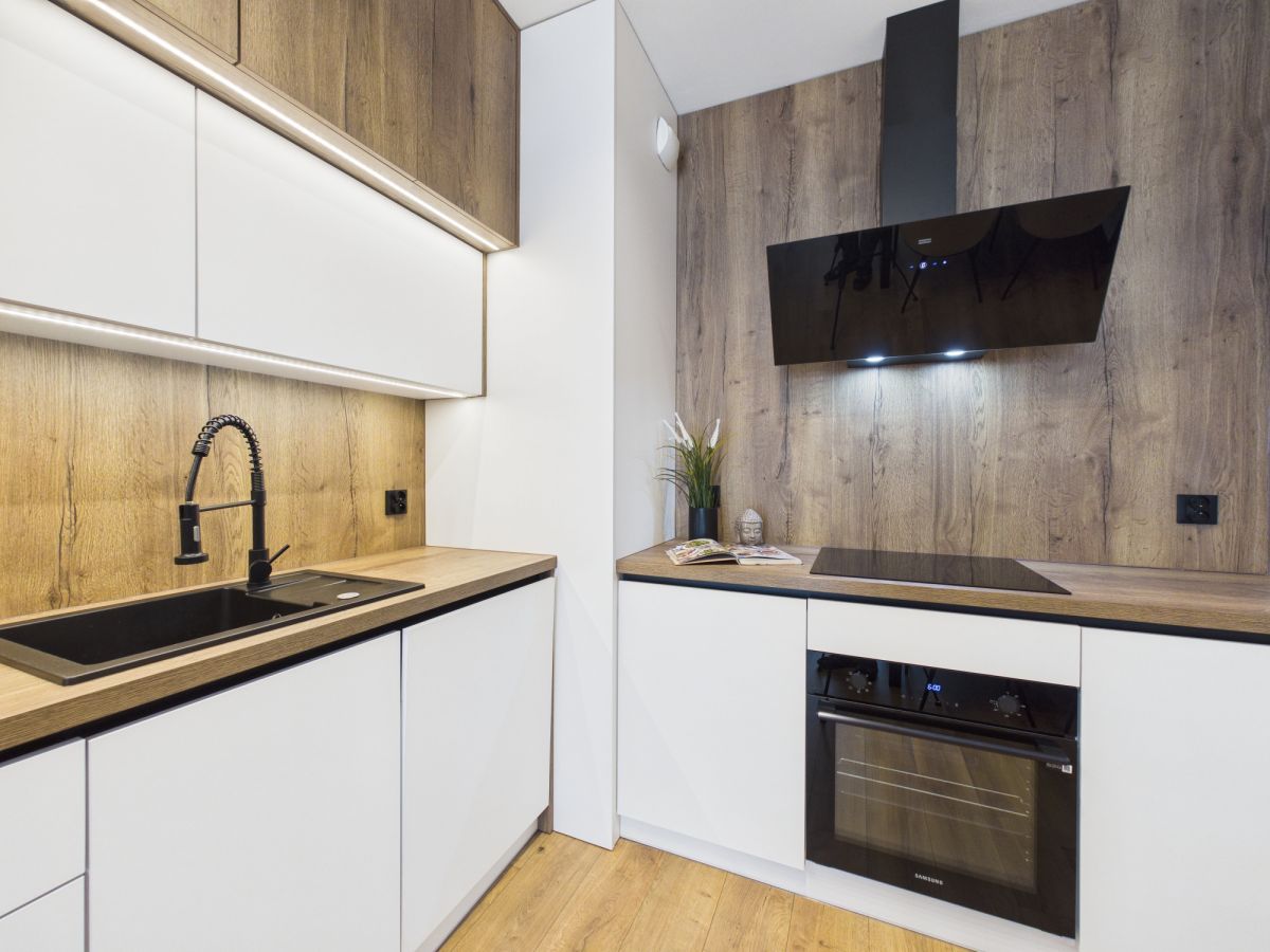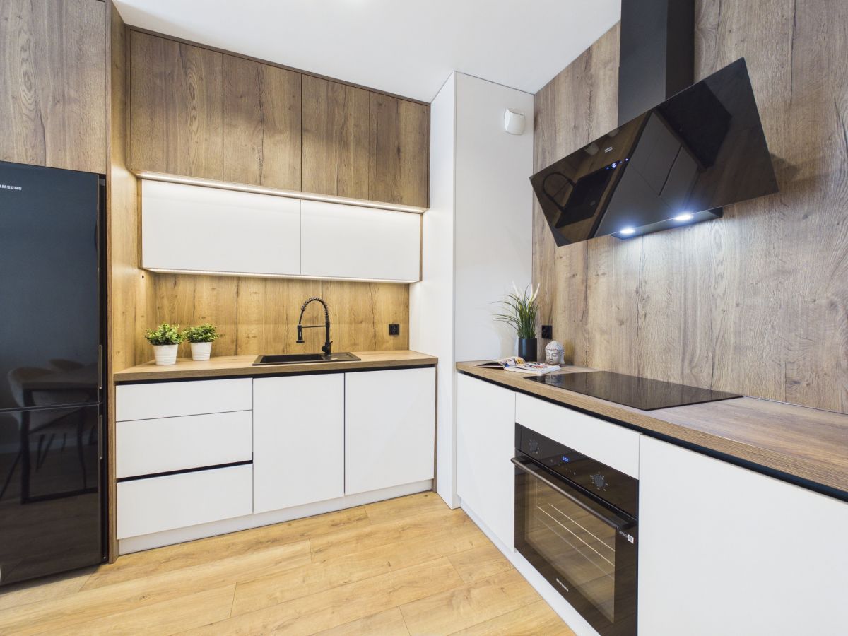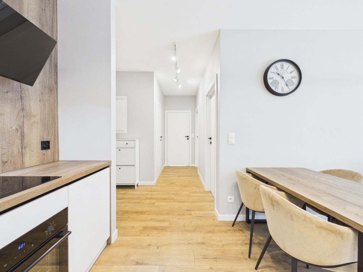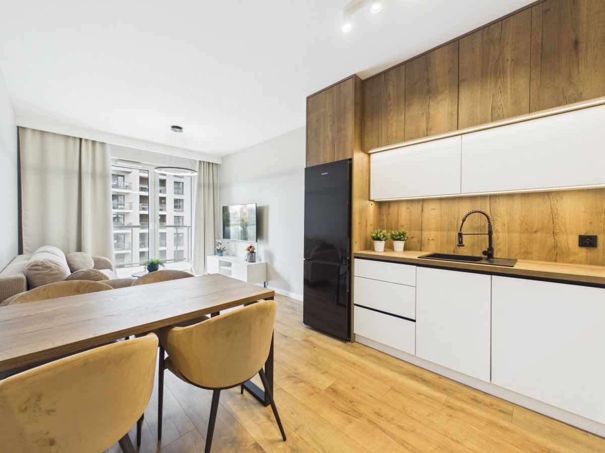 Do dyspozycji najemcy są lodówko-zamrażarka, zmywarka, piekarnik, płyta indukcyjna.