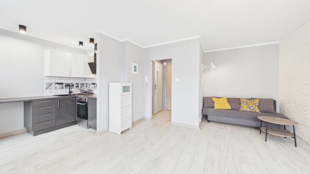 Przestrzeń i światło: Mieszkanie o powierzchni 31 m² znajduje się na 5. piętrze budynku po termomodernizacji. Zachodnia ekspozycja okien gwarantuje piękne, naturalne doświetlenie popołudniami.