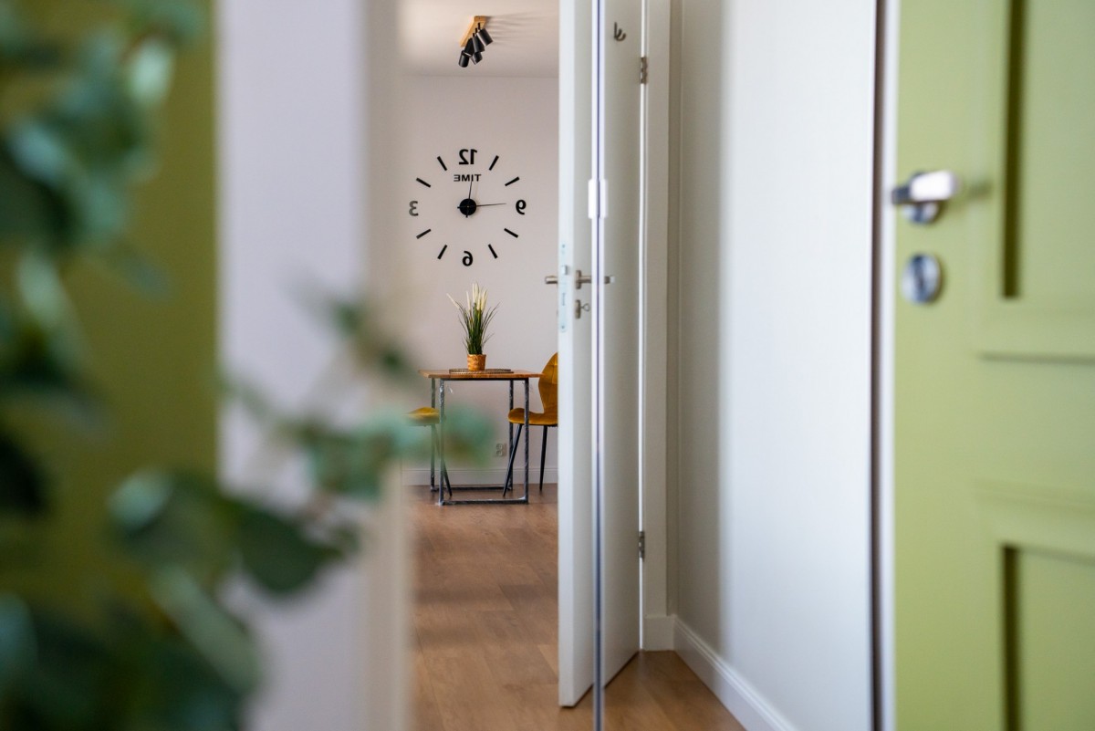 To mieszkanie położone jest na 4. piętrze w 5-piętrowym bloku, który został oddany do użytkowania pod koniec 2025 roku. Dzięki temu, że mieszkałbyś na wyższym piętrze, zyskujesz rozległy widok za oknami i dostęp do naturalnego światła słonecznego.