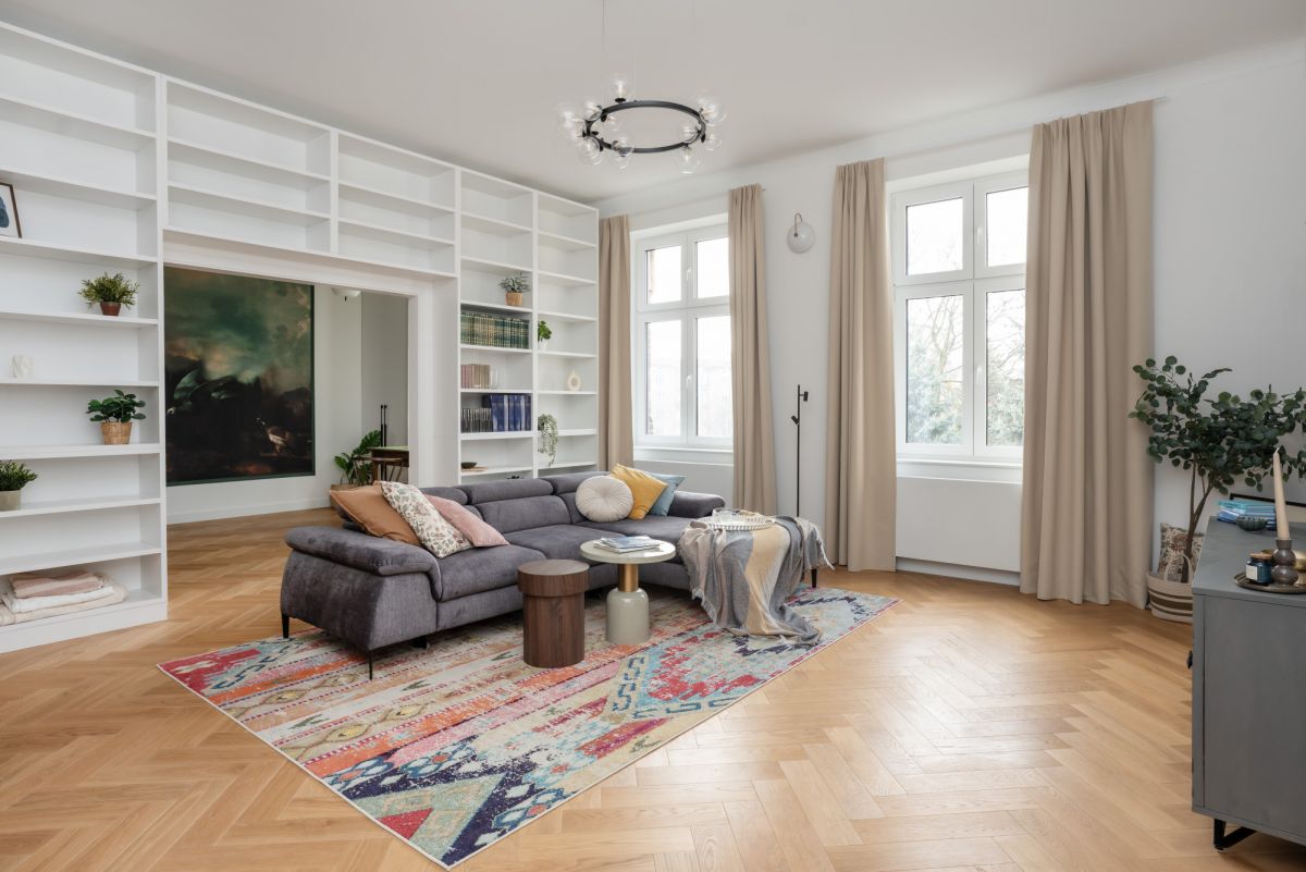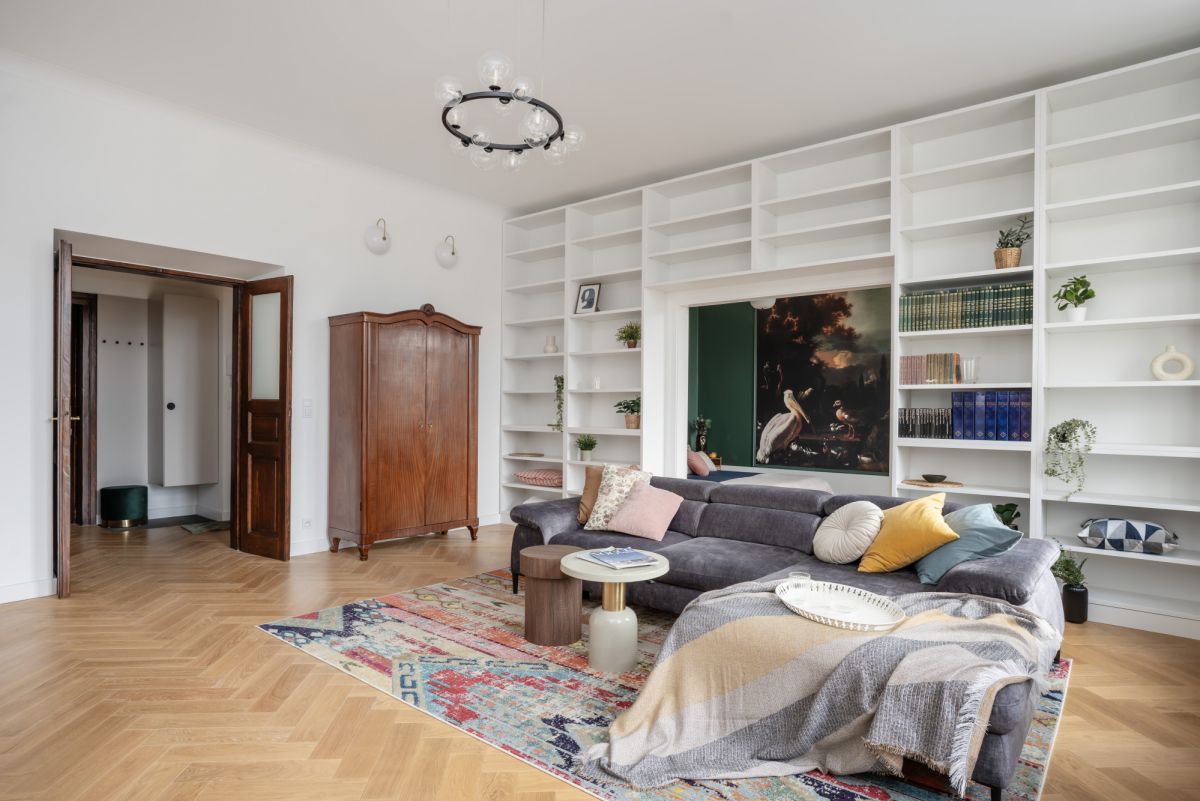 Wysokie sufity (ok. 3,30 m) nadają wnętrzu wyjątkowej przestronności i elegancji.